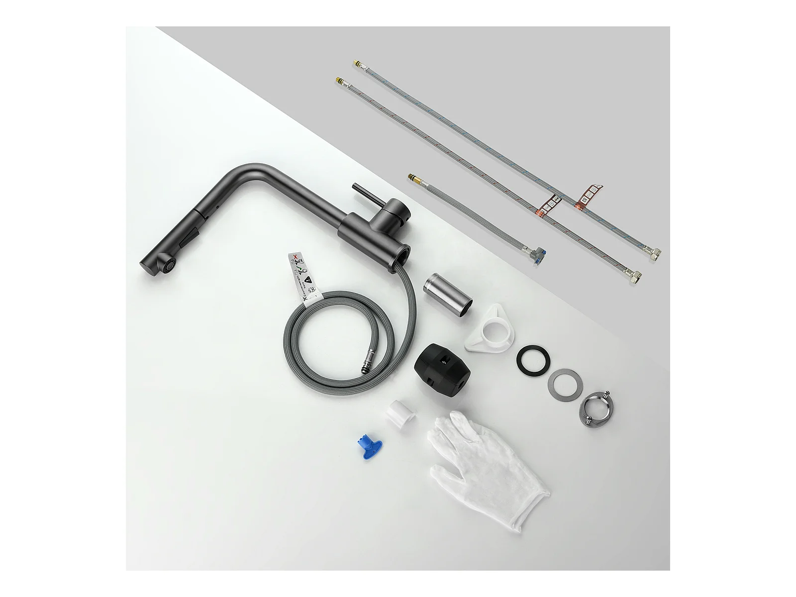 Miscelatore cucina con doccetta estraibile,2 modalità Jet, rubinetto cucina rotante 360°,acqua calda/fredda,cartuccia in ceramica,grigio,Modello UE