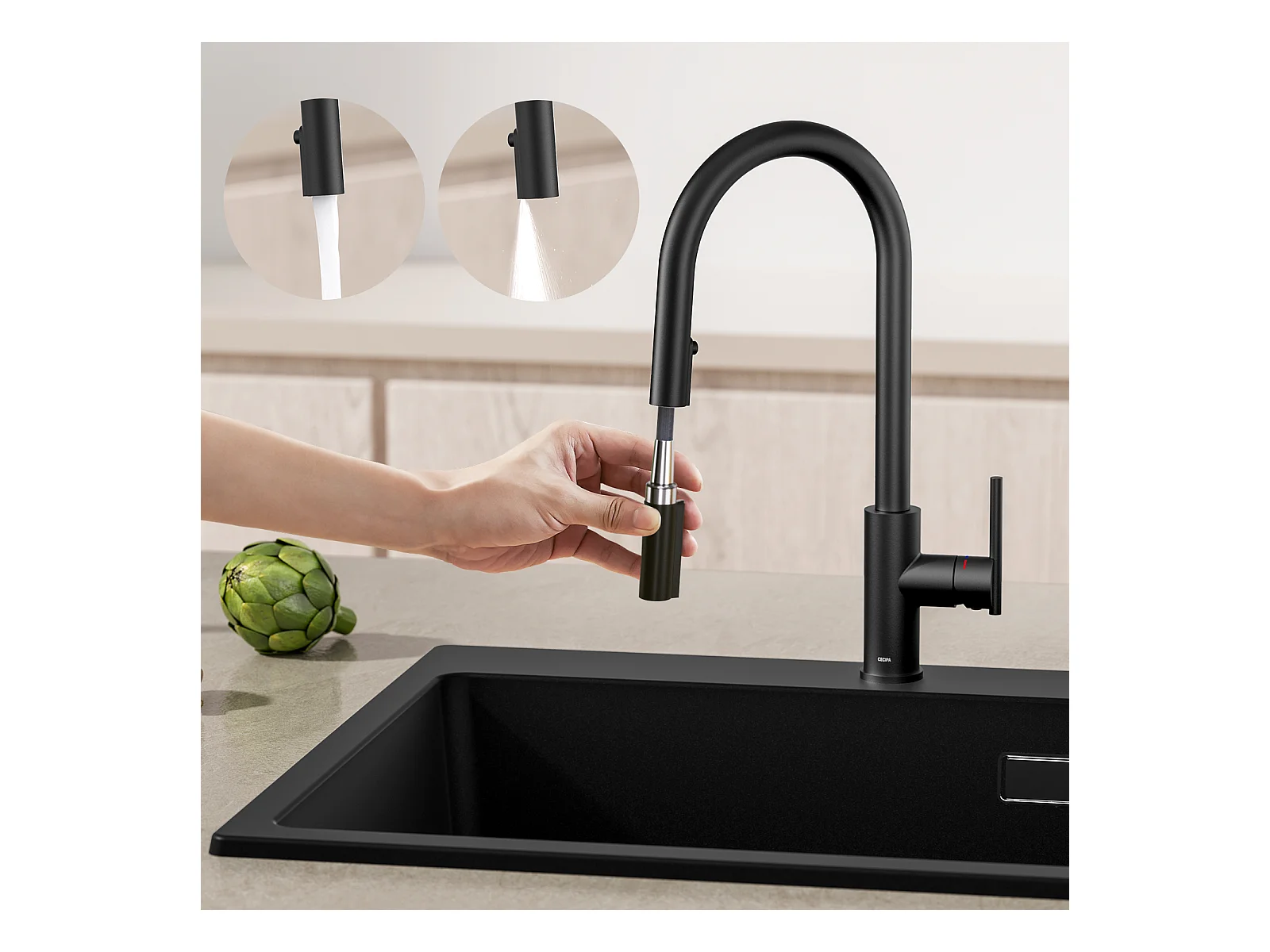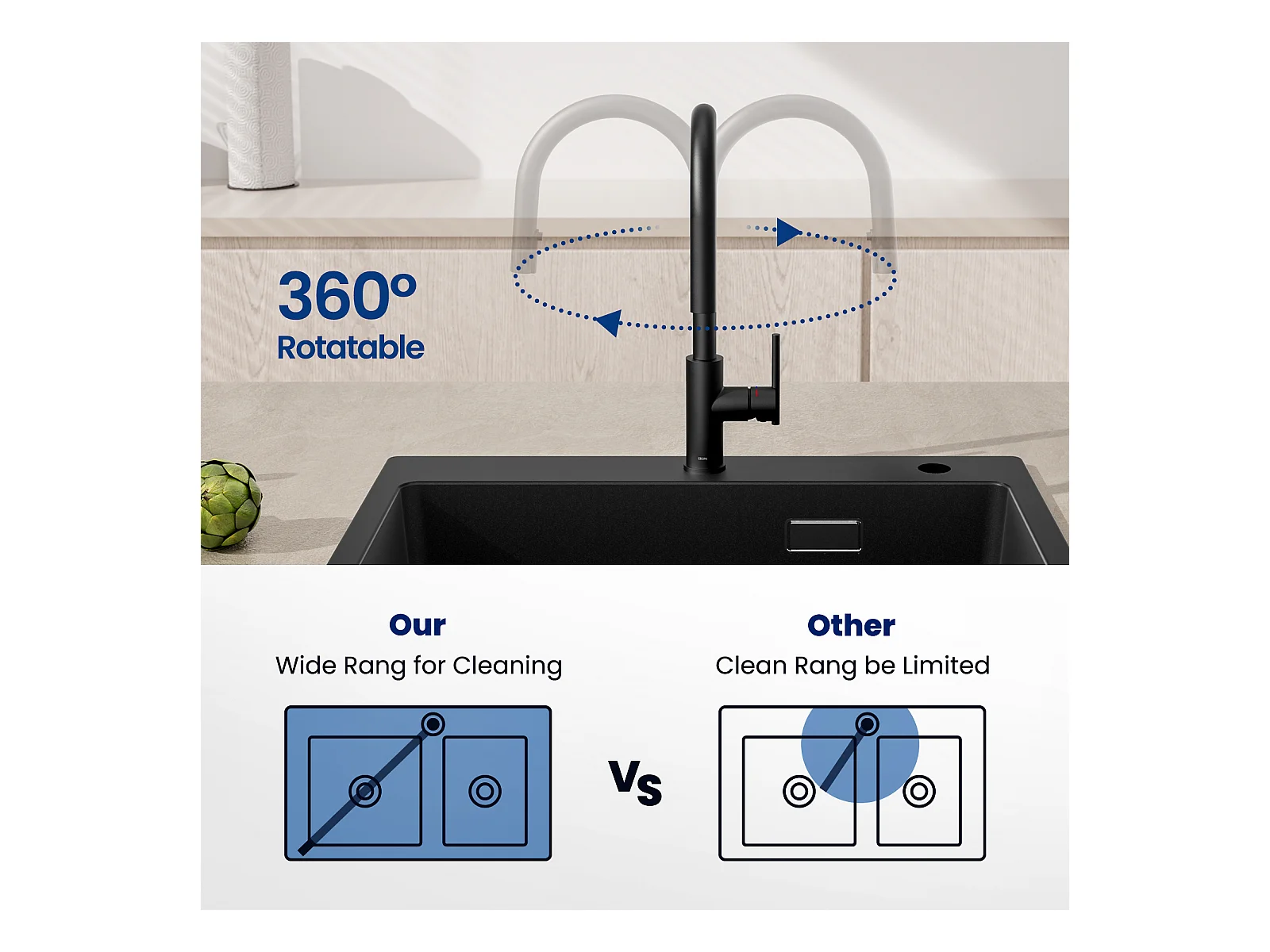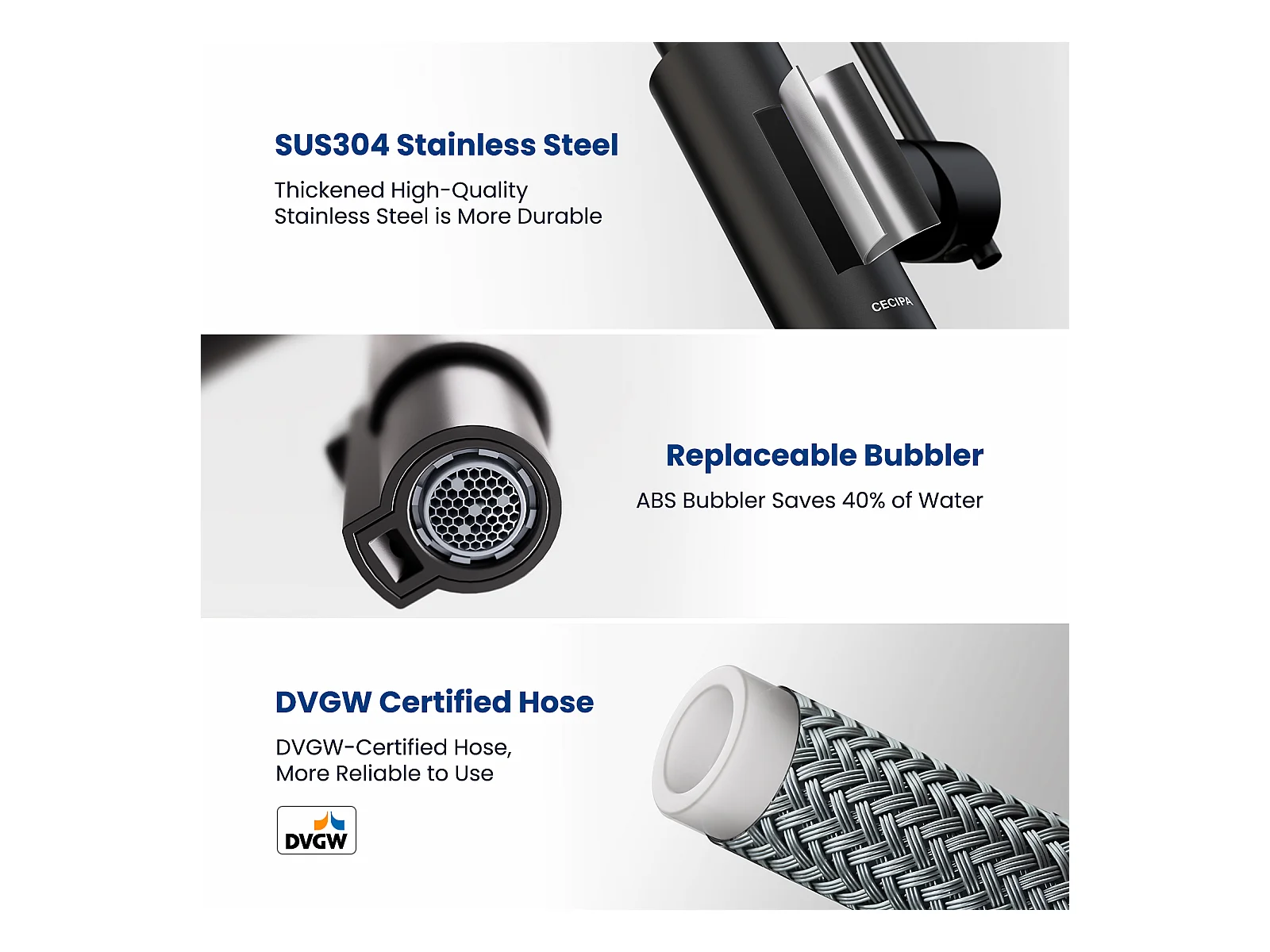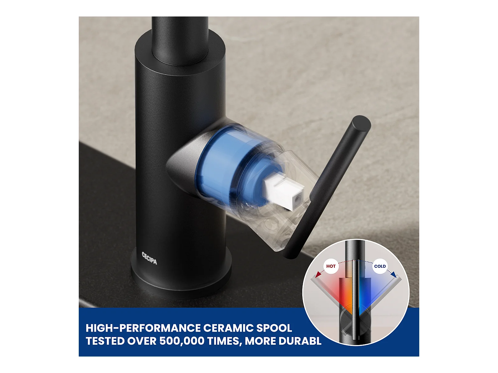 Cecipa max Miscelatore da Cucina con Doccia Estraibile Rubinetto da Cucina Nero Girevole a 360° con 2 Modalità di Uscita dell'Acqua, Modello EU