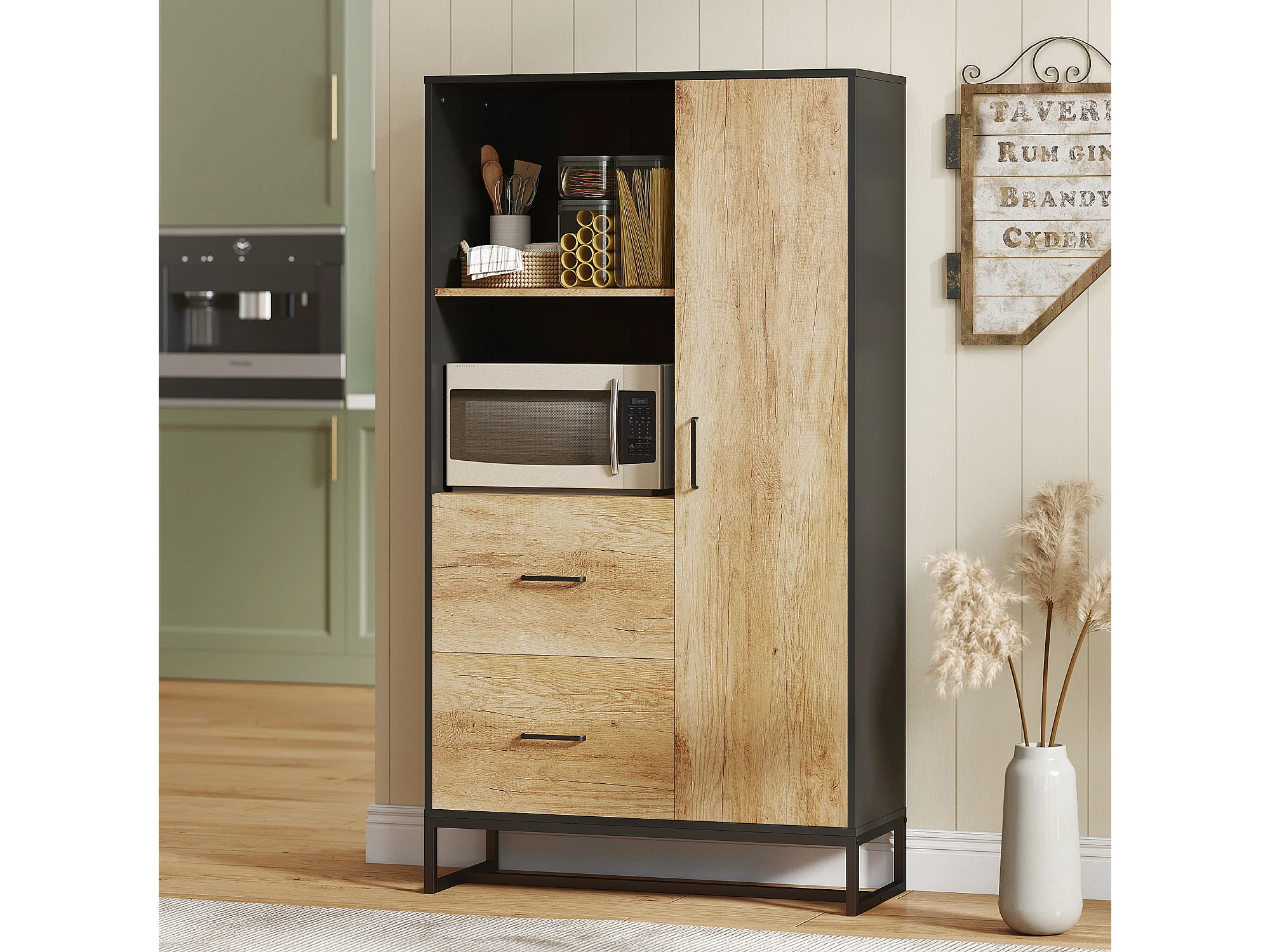 Credenza cucina, mobile dispensa con 2 armadiett