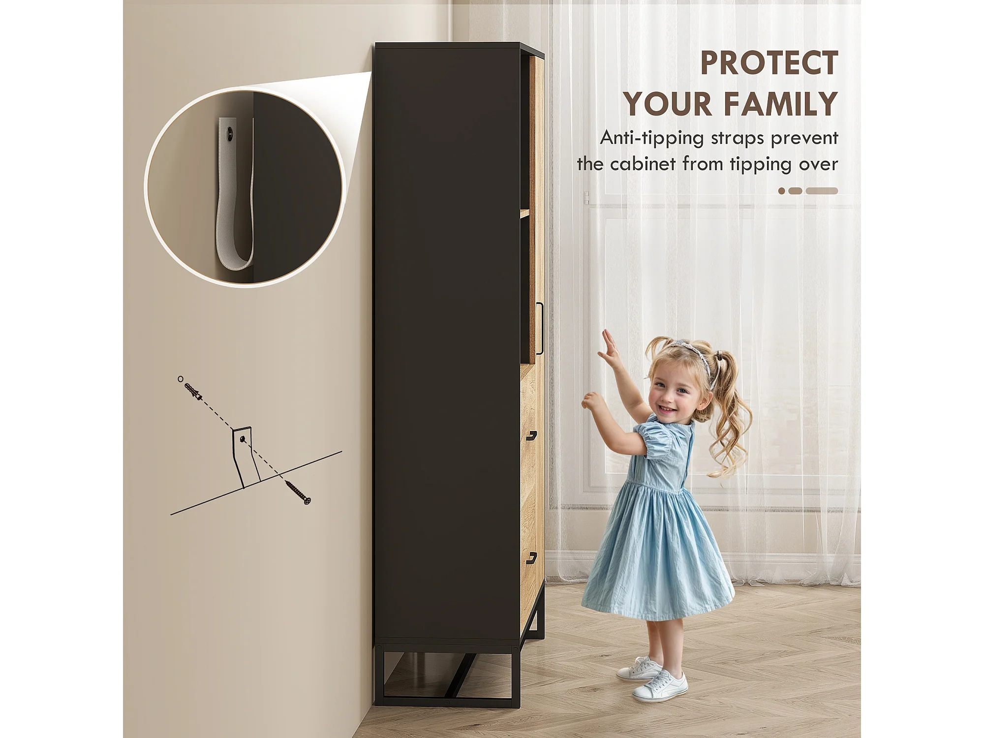 Mobile dispensa cucina a 9 ripiani regolabili color legno e nero