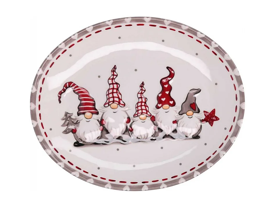 Centrotavola ceramica con gnomi bianco ovale cm 30x25h2,5