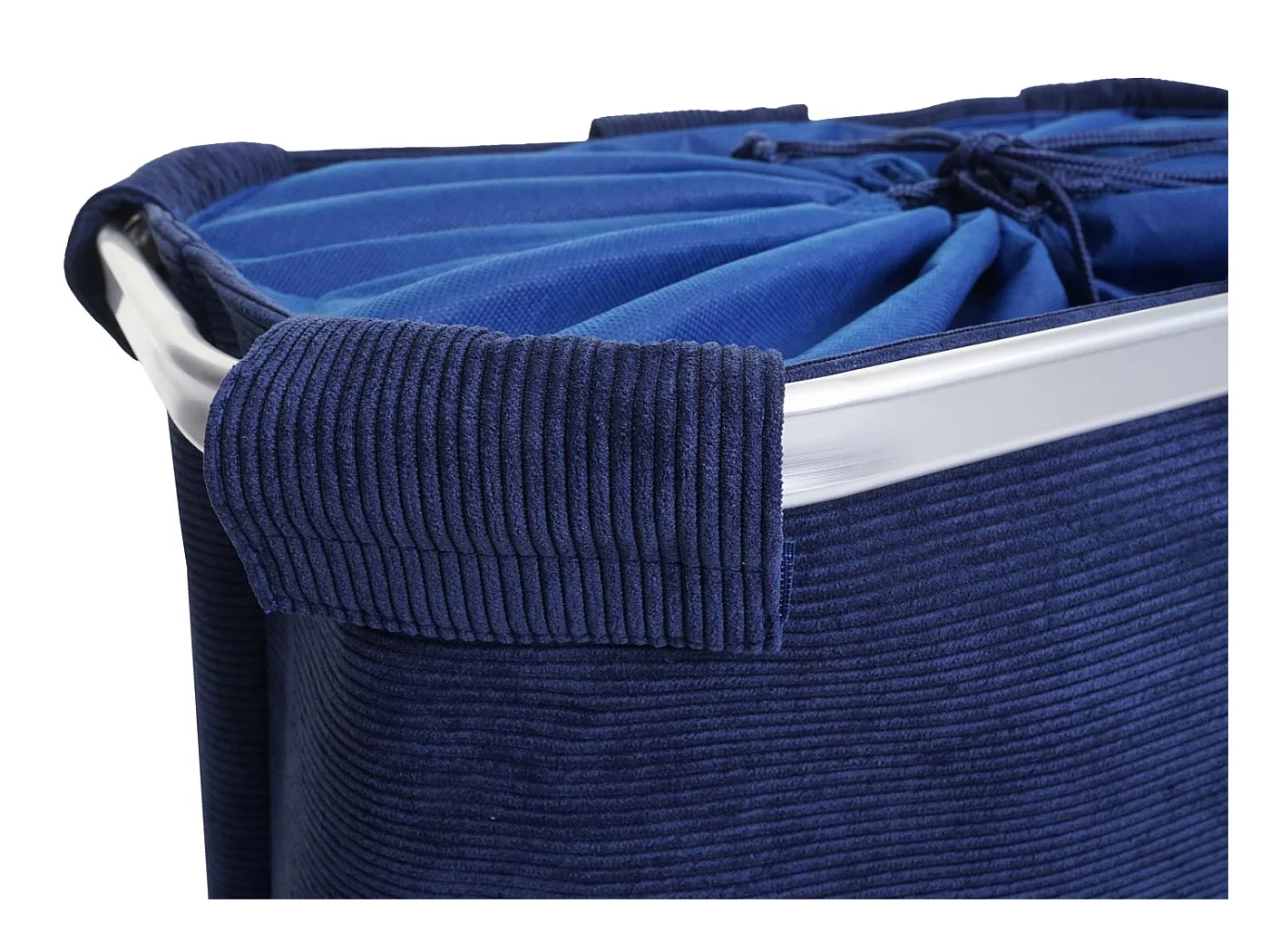 Cesta borsa portabiancheria MCW-C34 tessuto ~ a coste 2 scomparti 82l blu