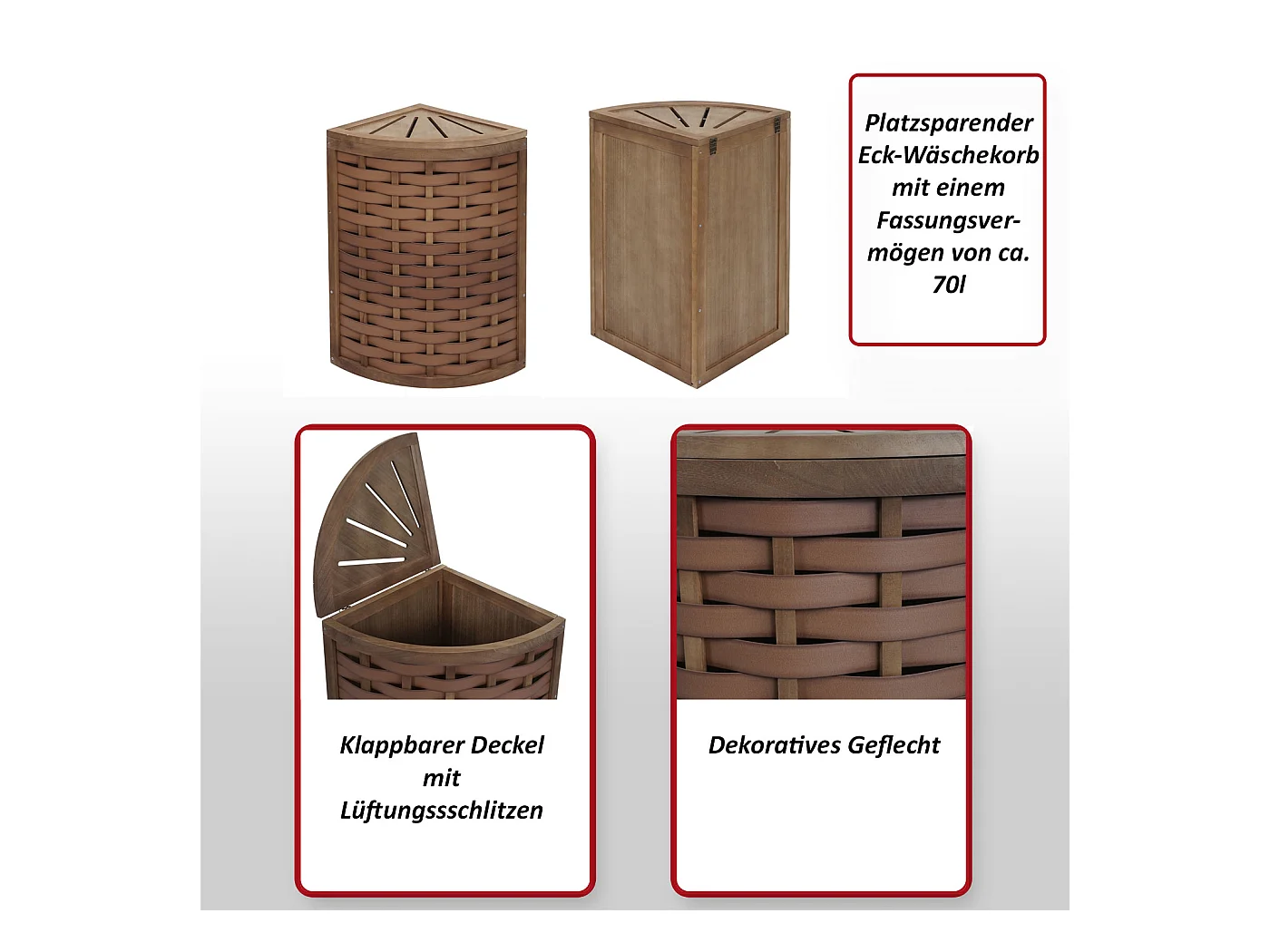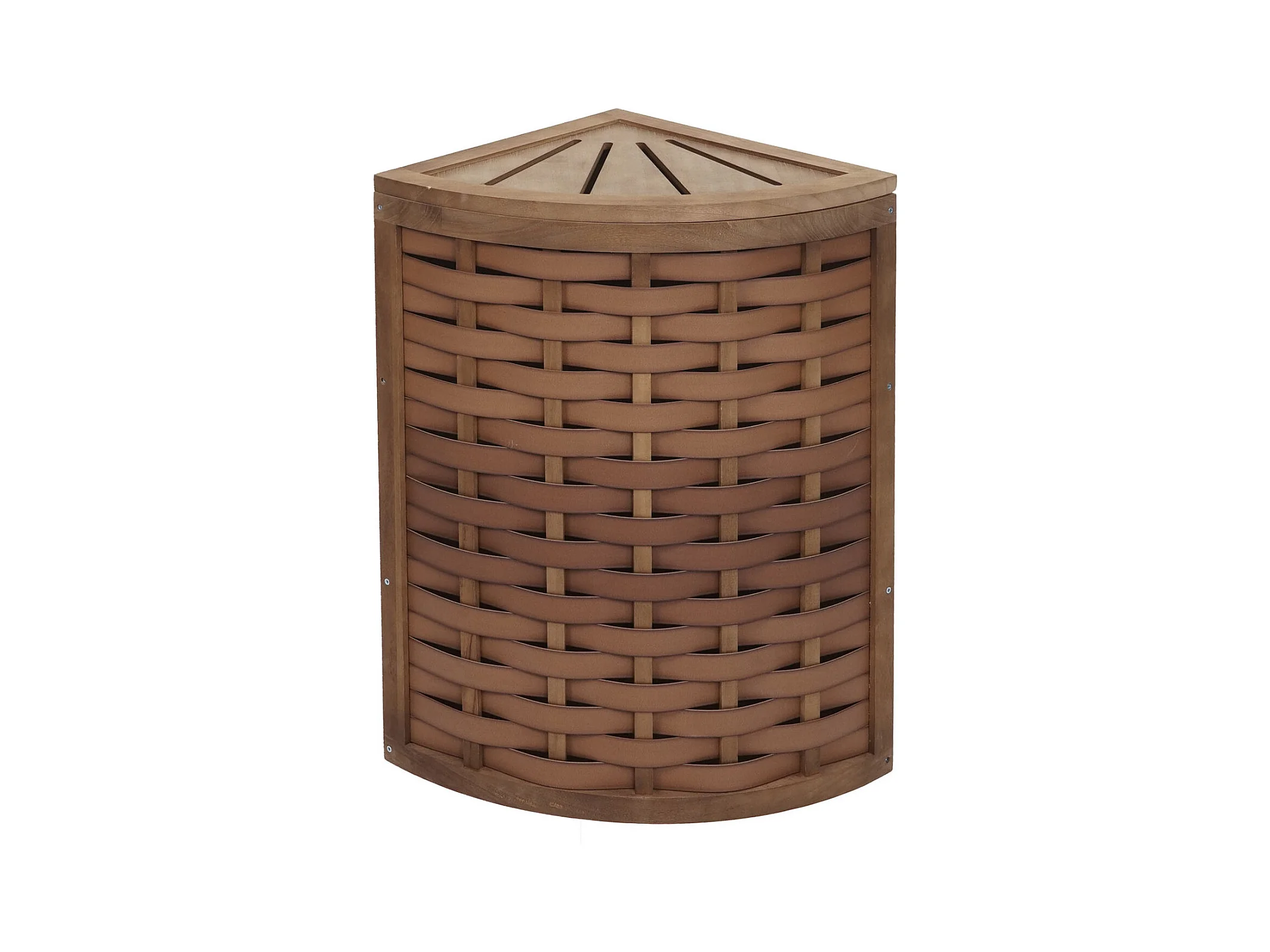 Cesta portabiancheria angolare decorativa MCW-H87 legno pauloinia intreccio polietilene marrone