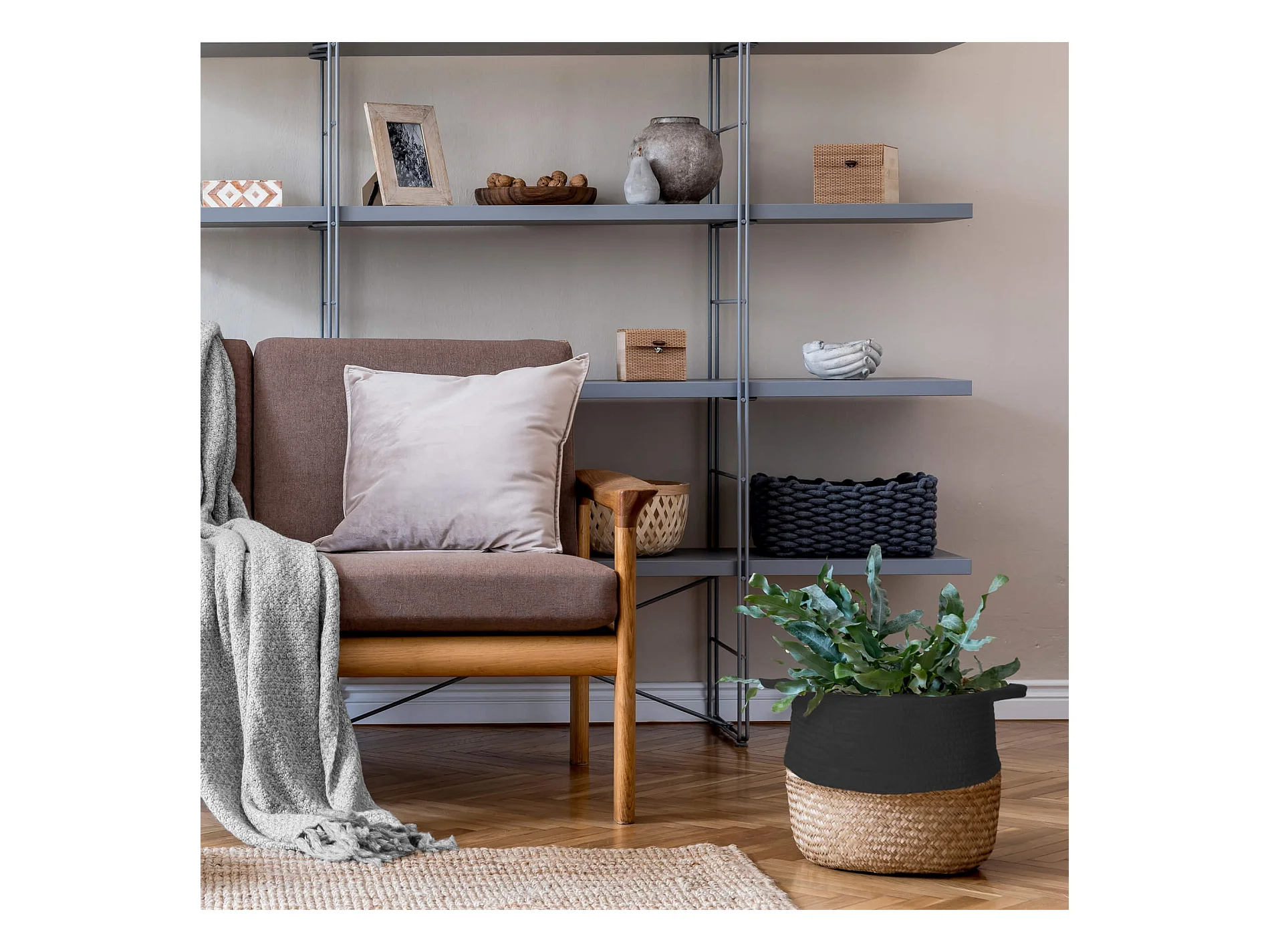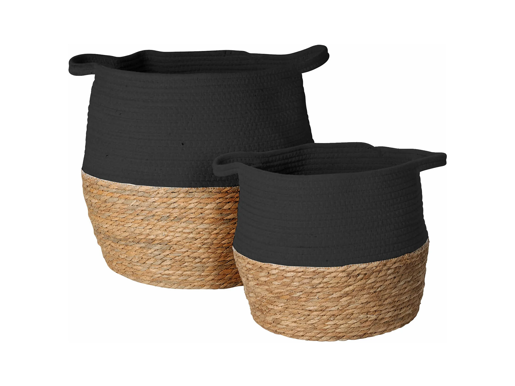 Ceste Portaoggetti Rebecca Mobili Warda 35x35x35 Alga Marina Cotone Marrone Nero Boho SET 2 pezzi