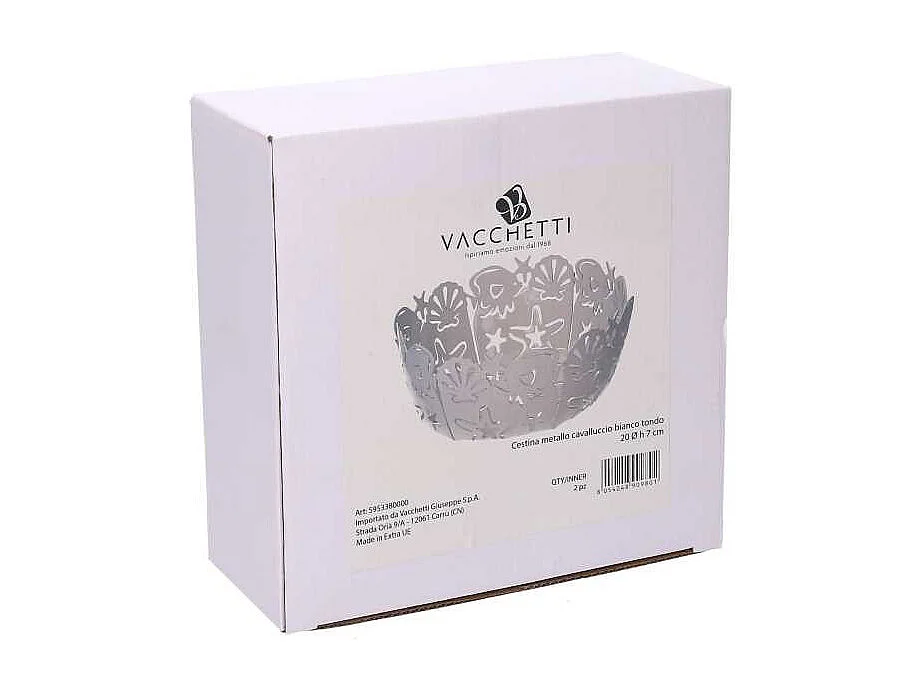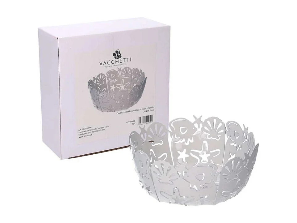 Cestina metallo cavalluccio bianco tondo cm ø20h7