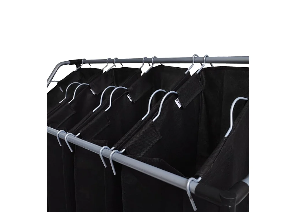 Raccoglitore per biancheria con 3 sacchi in acciaio nero