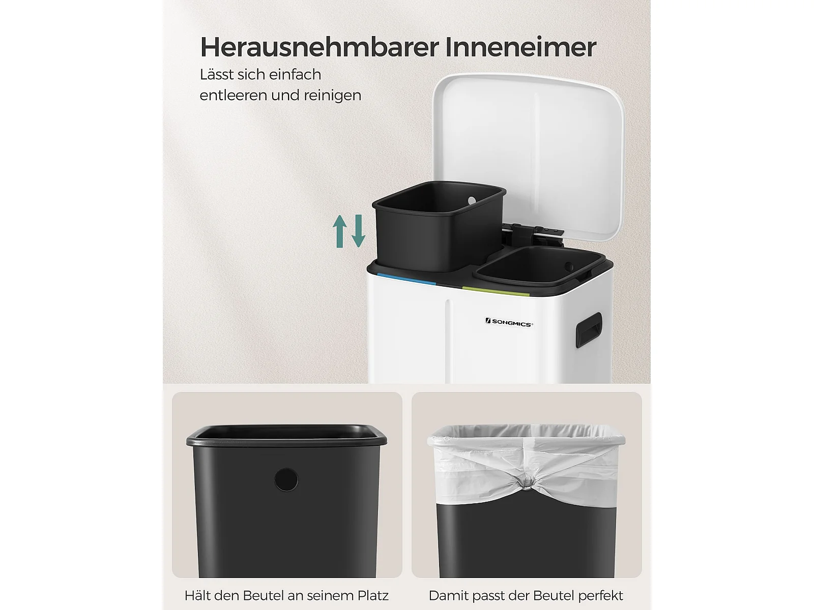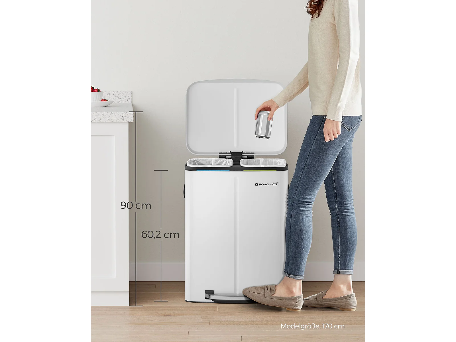 Cestino per rifiuti 40 litri (2 x 20 L) Bianco