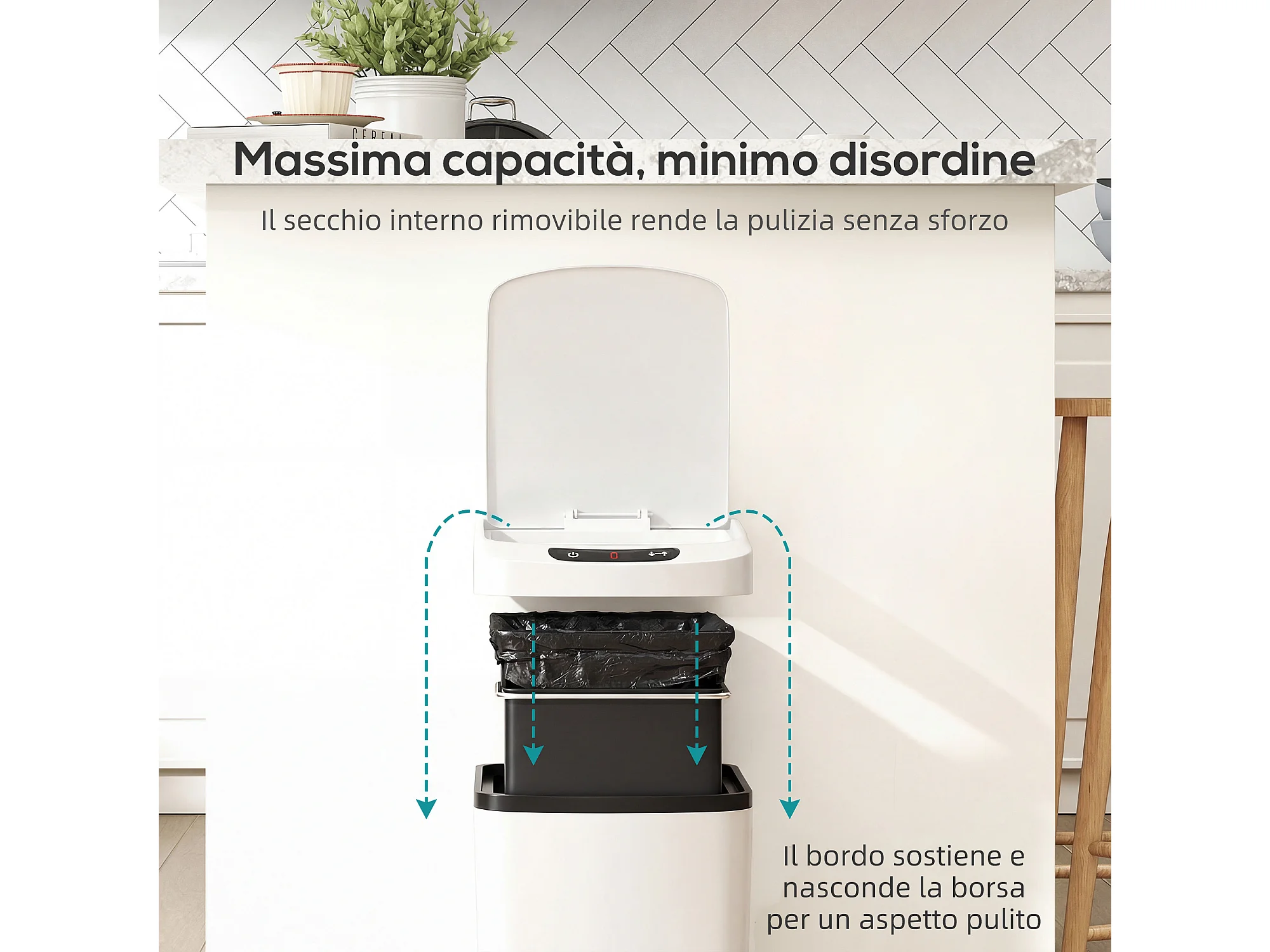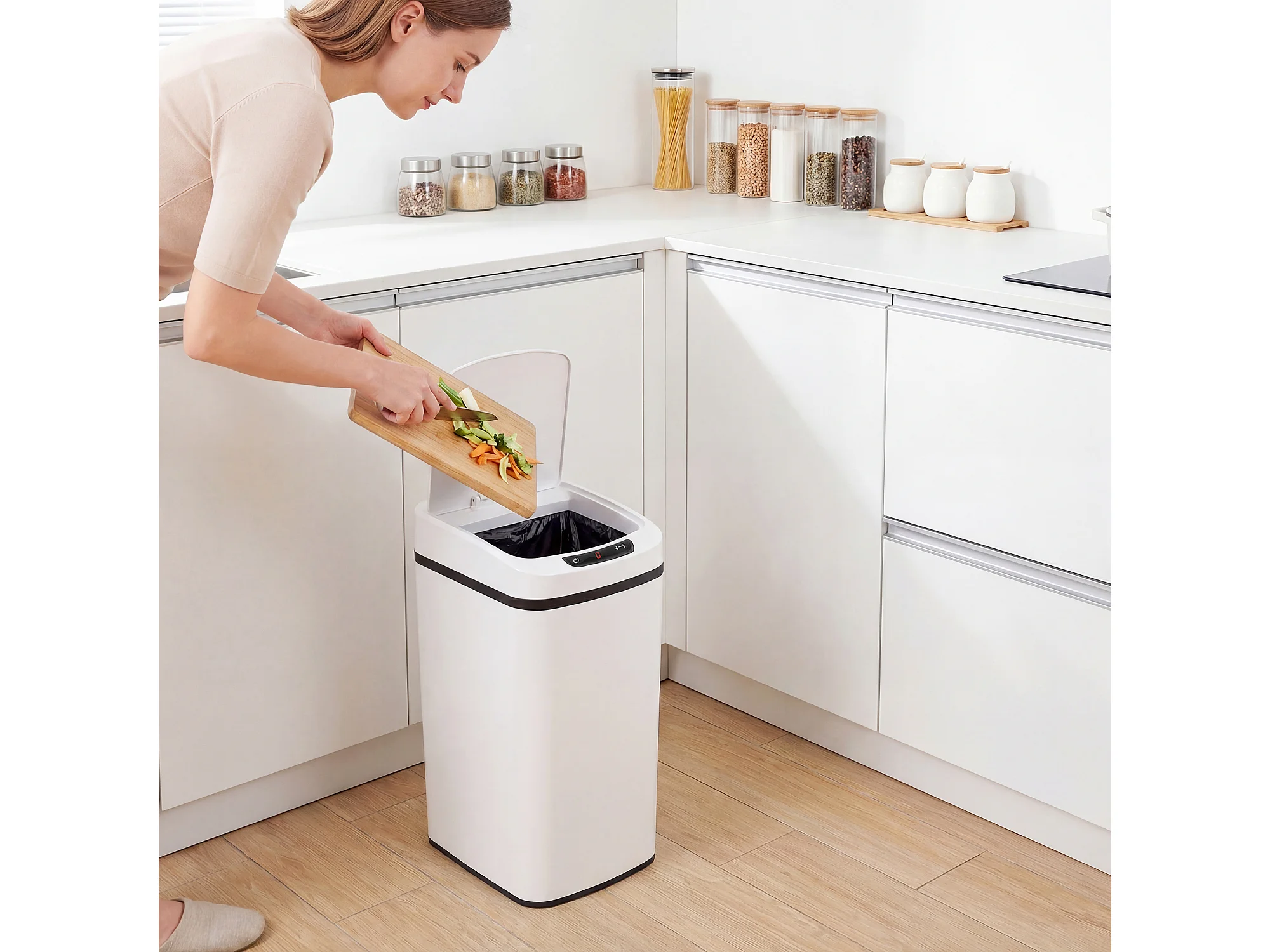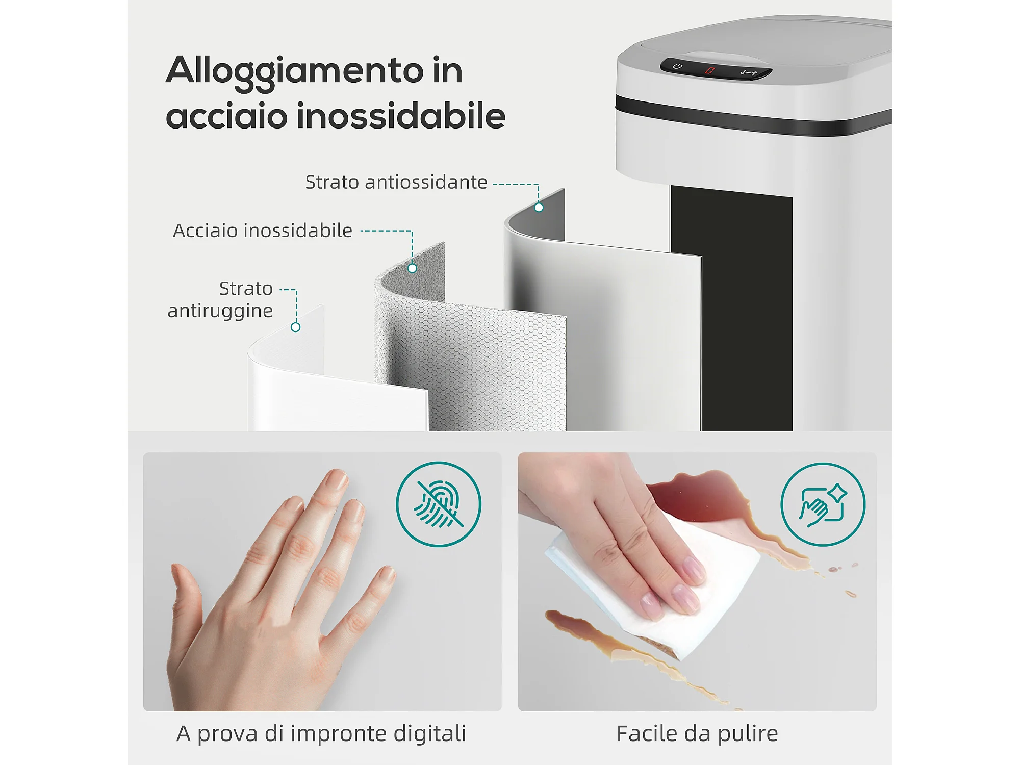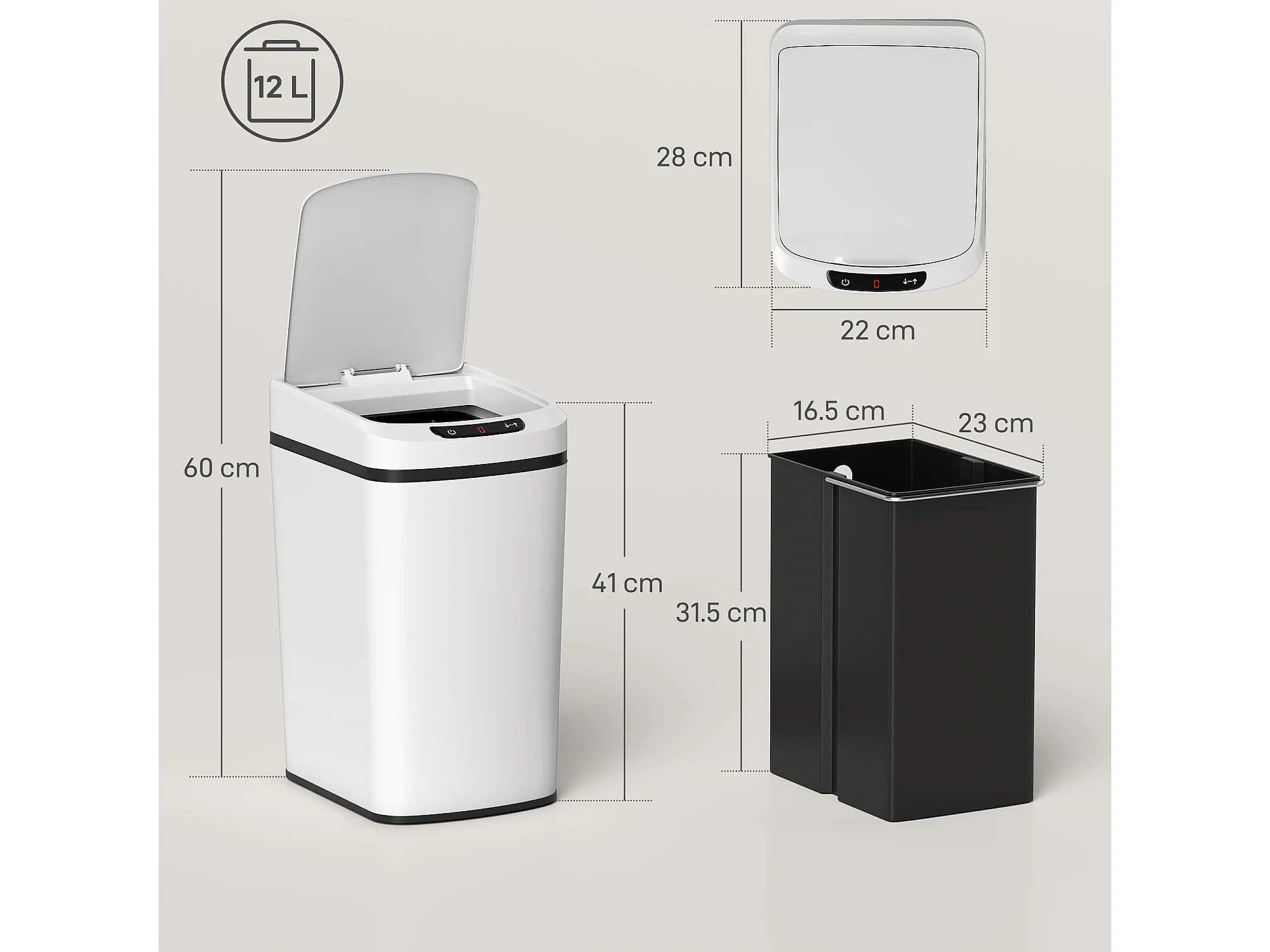 Cestino rifiuti da 12l a infrarossi in acciaio inox 28x22x41 cm bianco