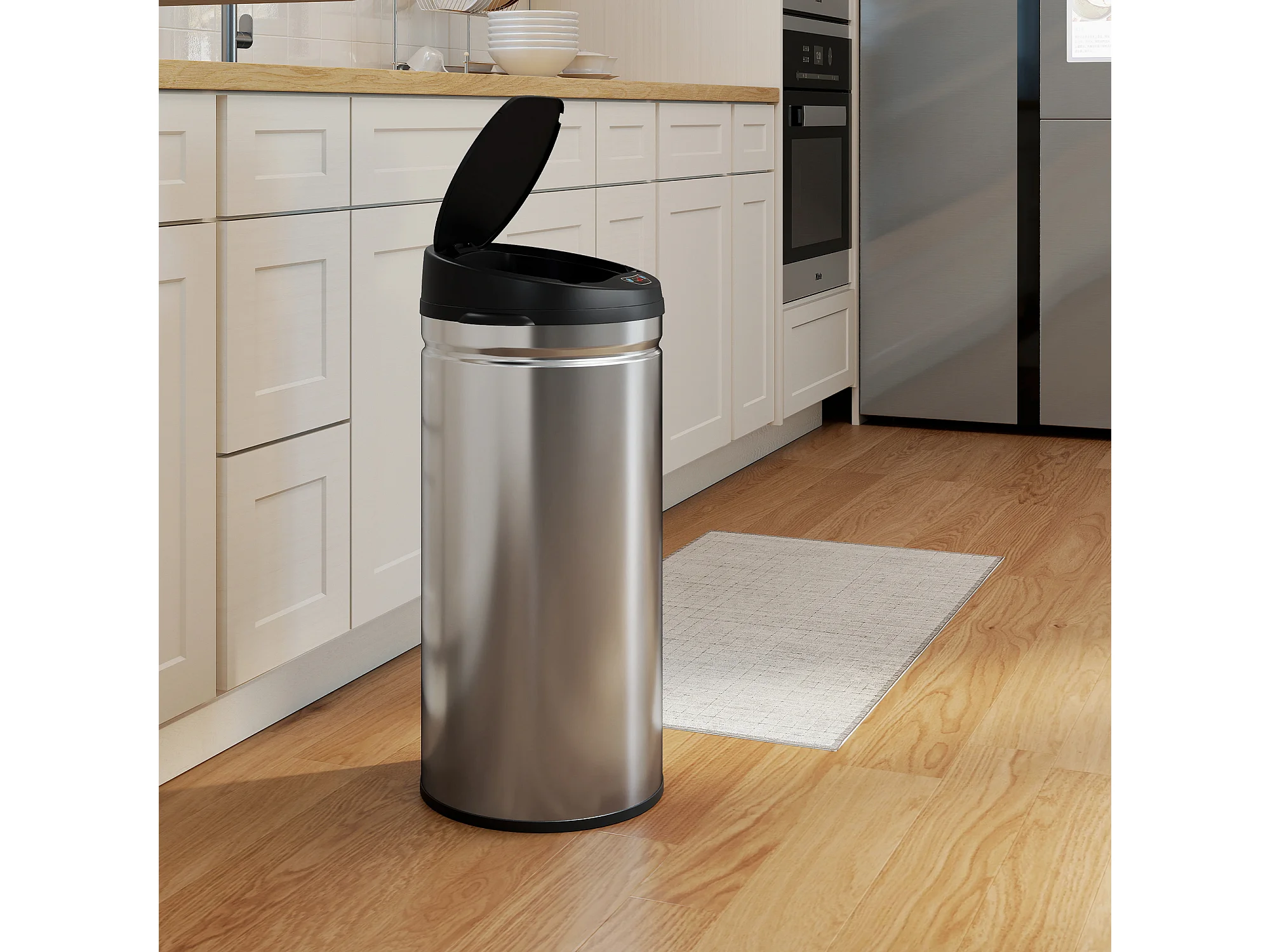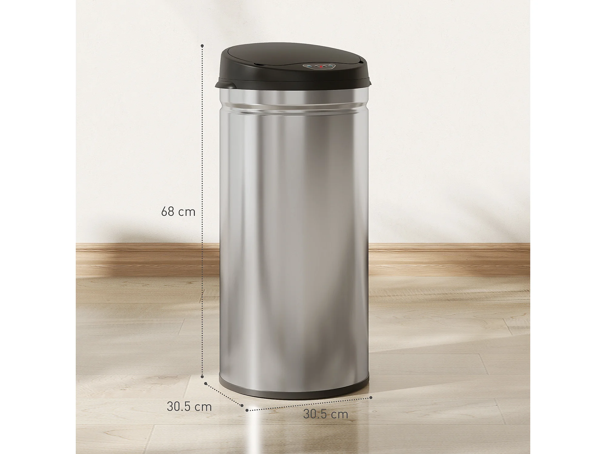 ML-Design Pattumiera automatica 40L, cestino per rifiuti con sensore rotondo in acciaio inox argentato, con anello per sacchetti, per cucina e ufficio