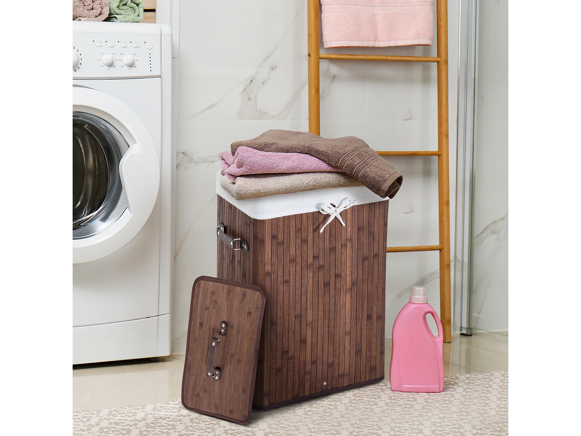 Cesto portabiancheria con 2 scomparti coperchio e manici in bambù