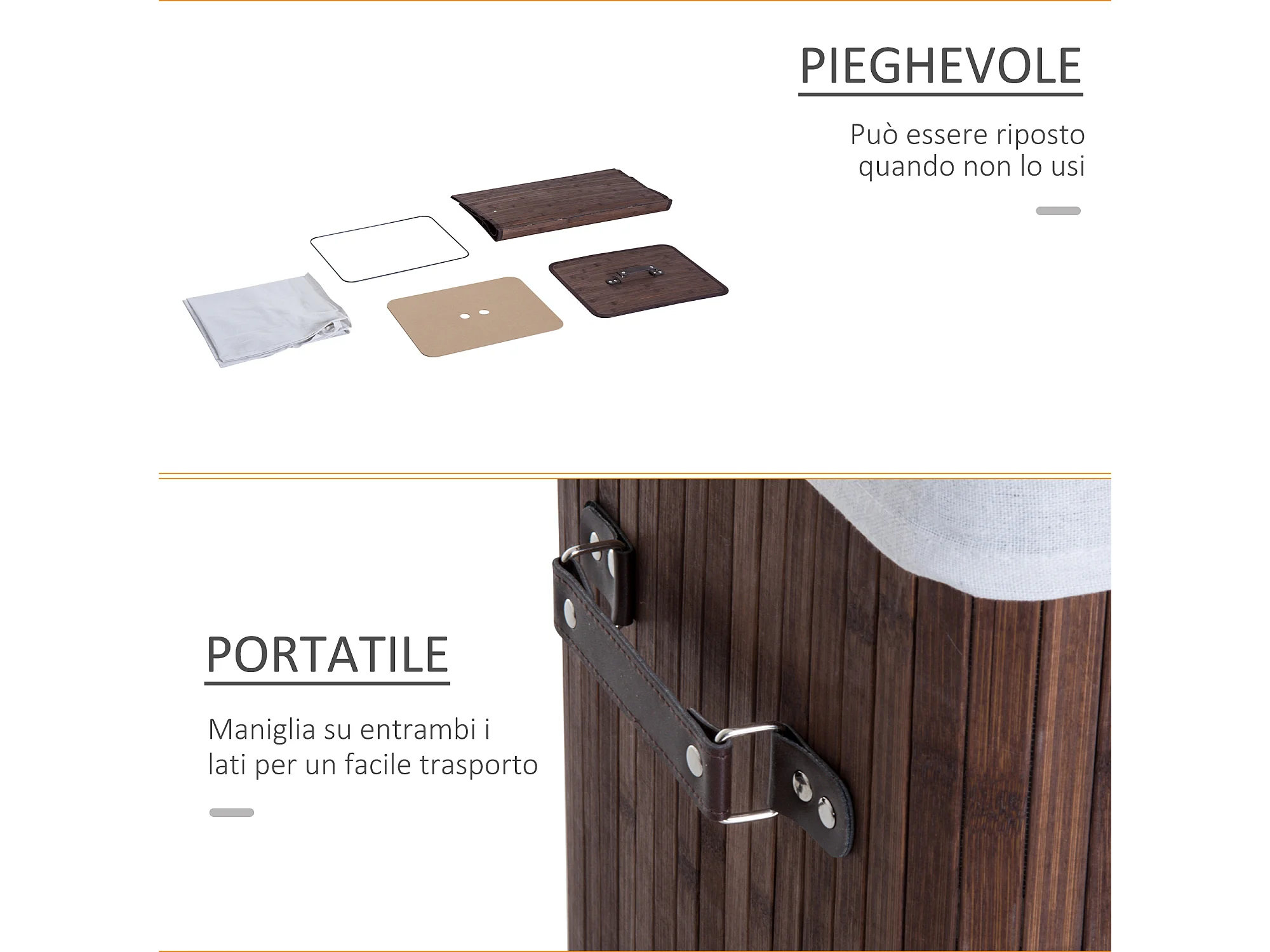 Cesto Portabiancheria da 55L con sacco estraibile in bambù marrone