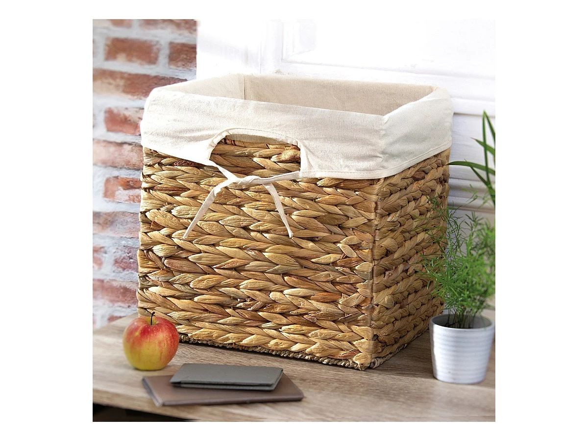 Cesto contenitore in giacinto d'acqua - 32 cm x 32 cm x 32/33 cm