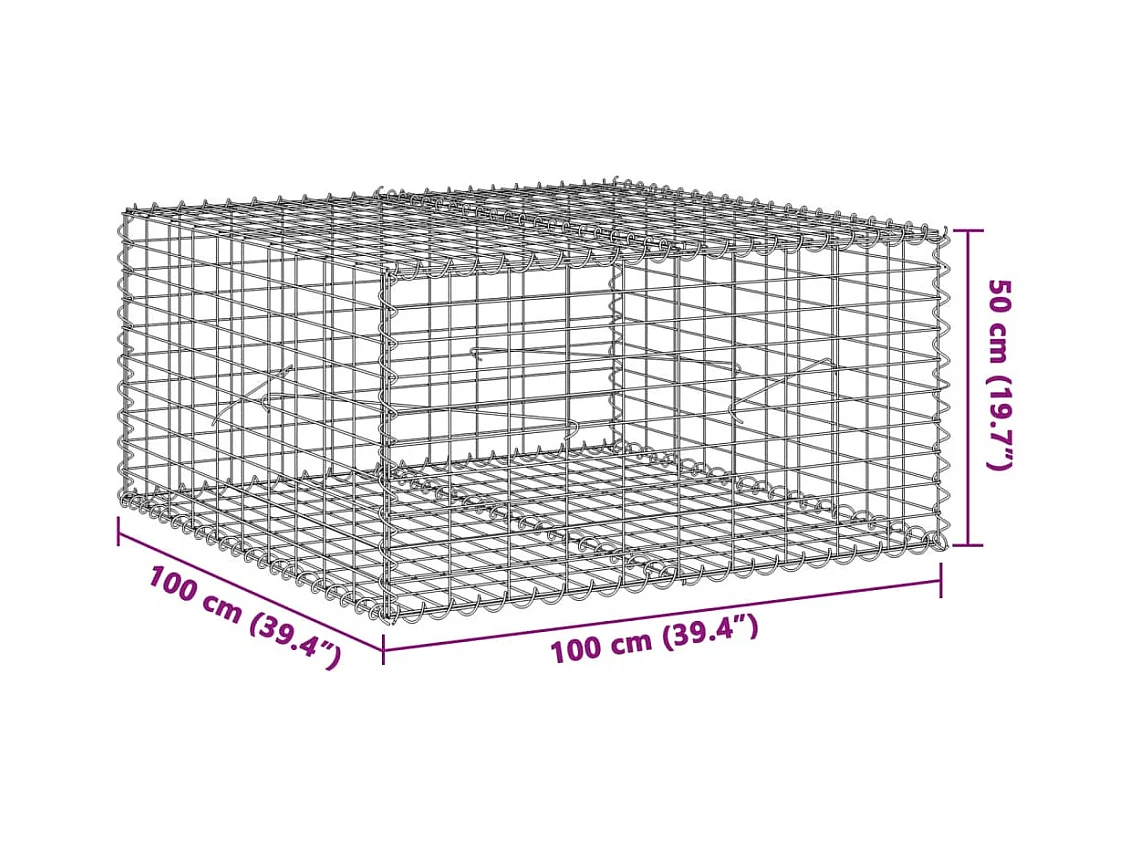 Cesto Gabbione con Copertura 100x100x50 cm Ferro Zincato