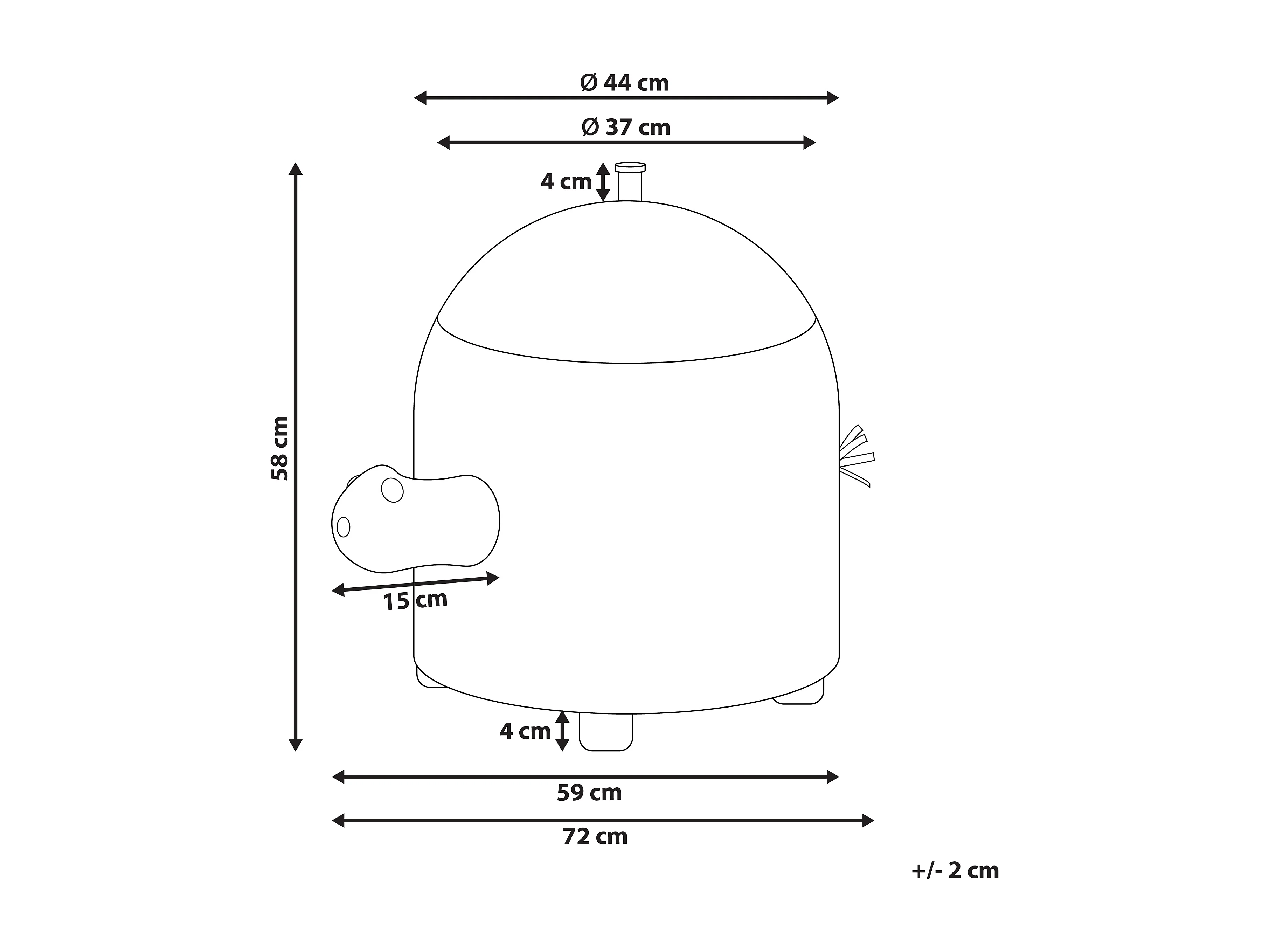 Peluche XL poliestere grigio Dino 90x65x28cm