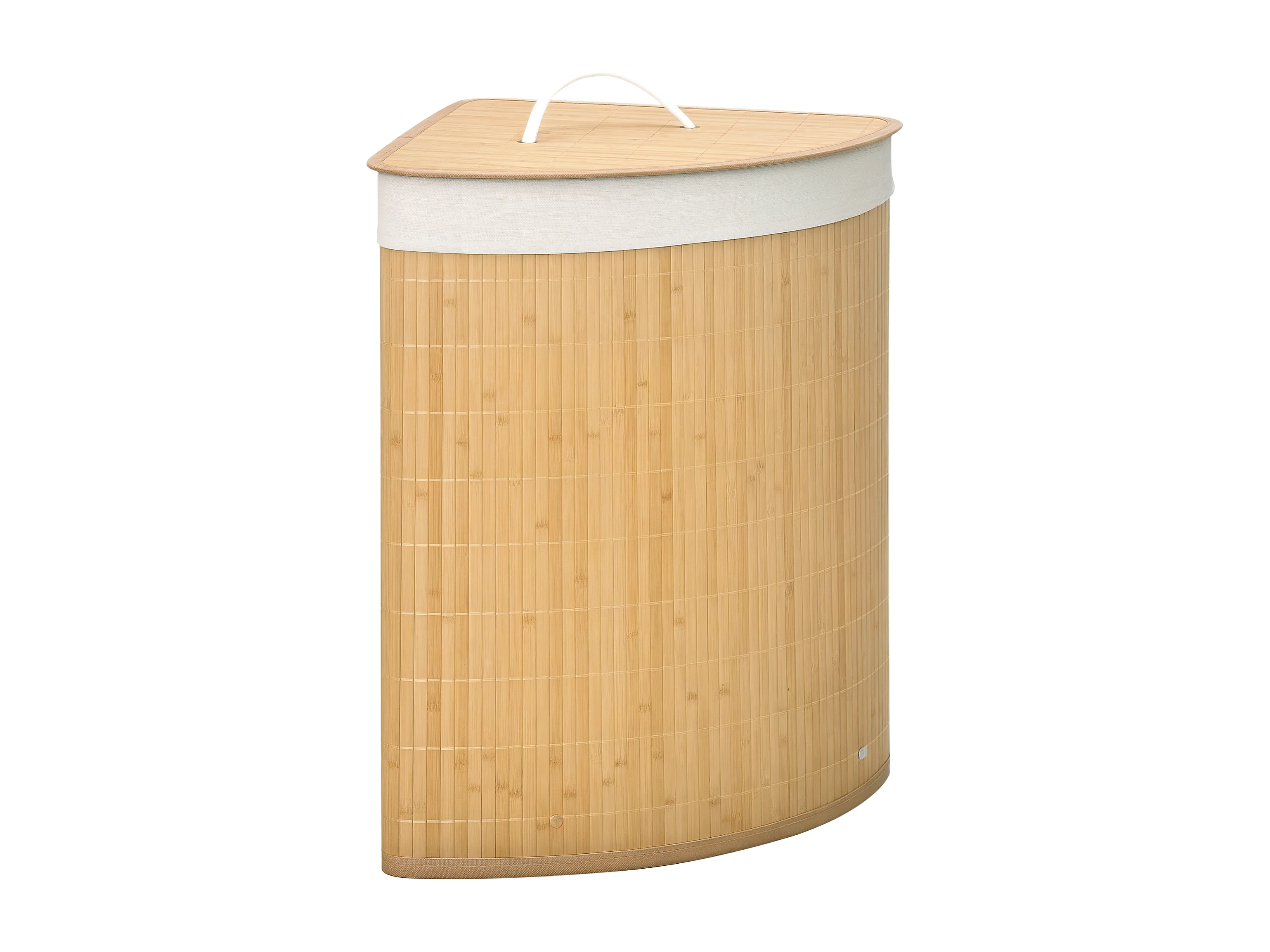 Cesto portabiancheria con coperchio triangolare in bambù color legno
