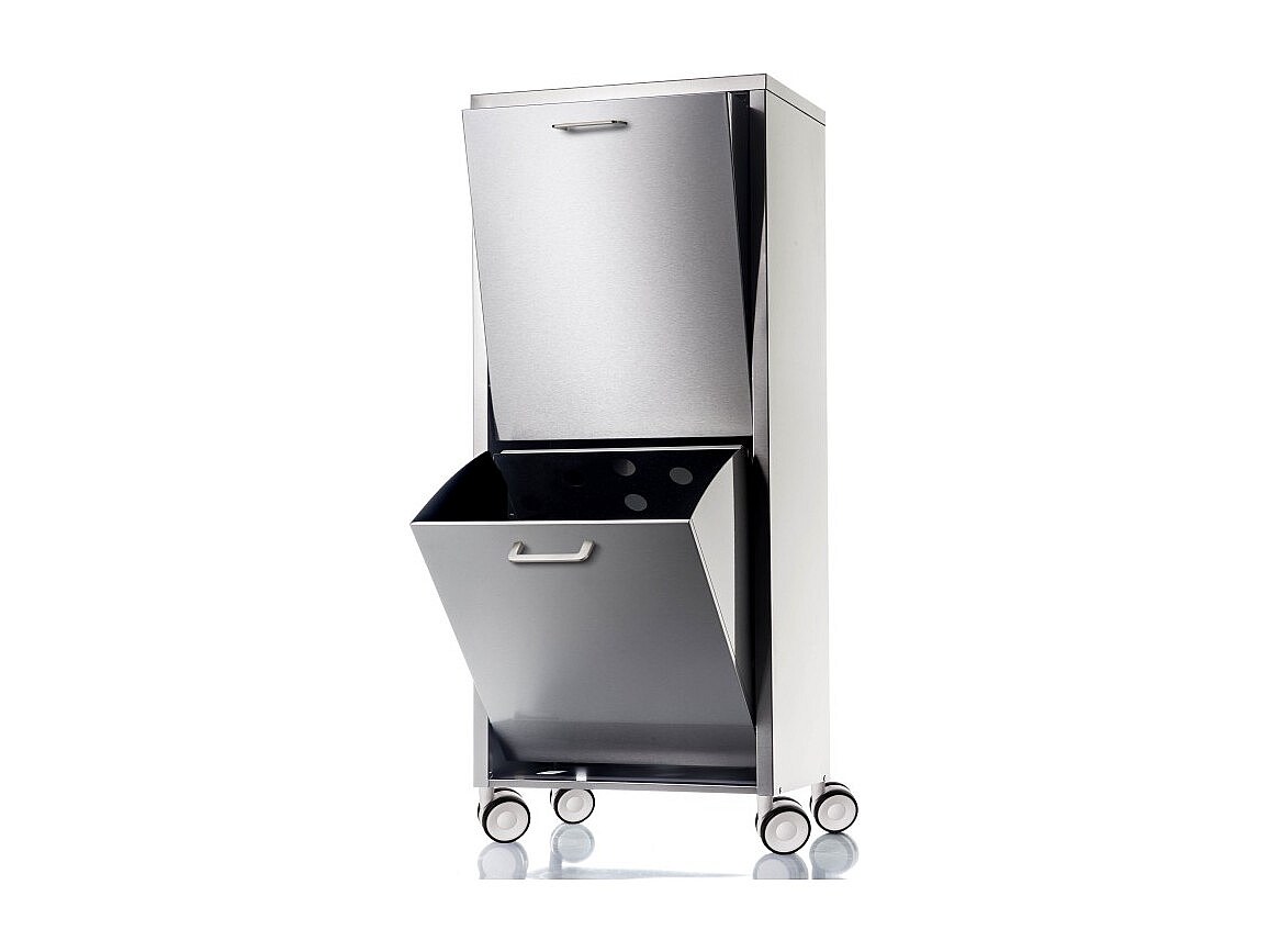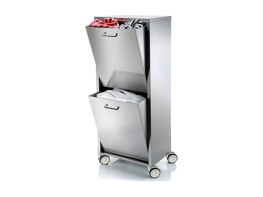 Cesto portabiancheria con ruote, 2 scomparti - Acciaio inox - 96*40*27 cm - TANGO