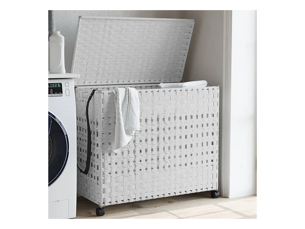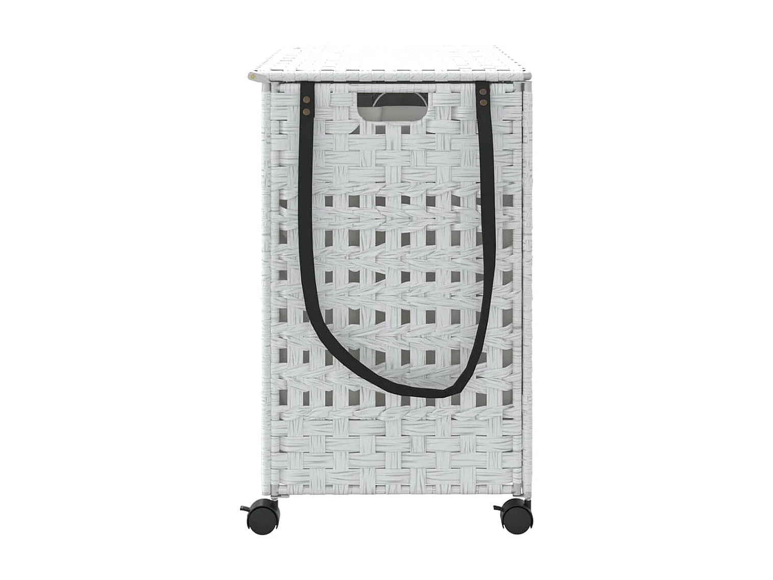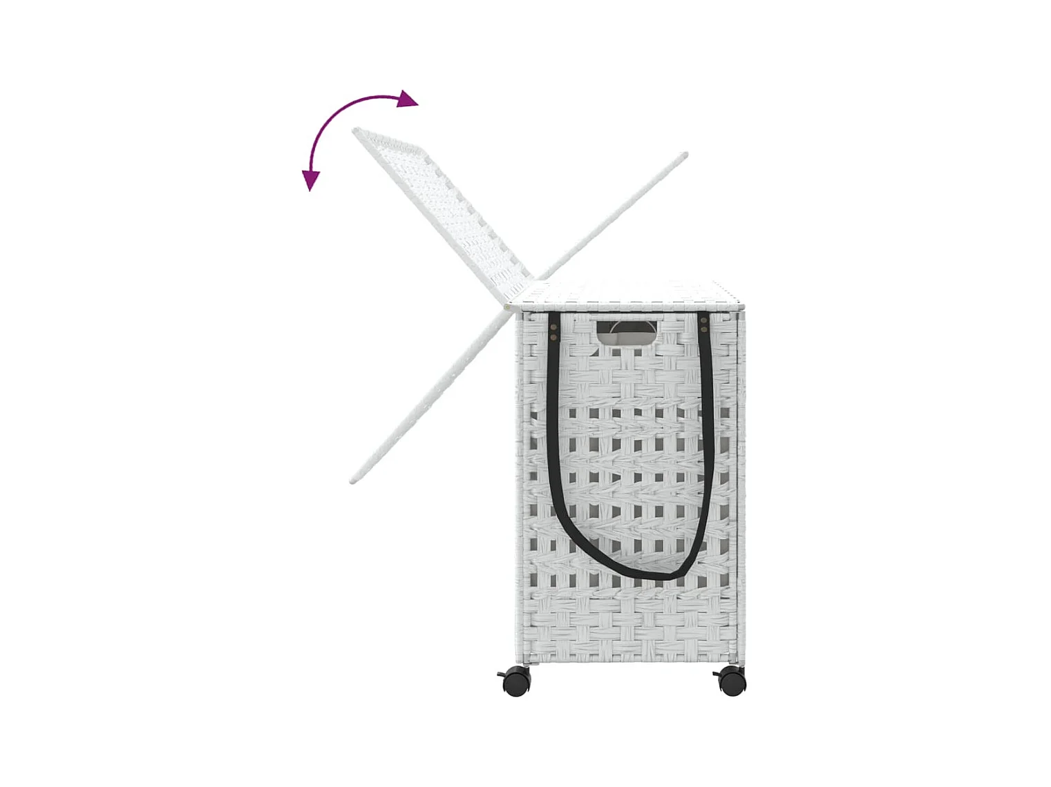 Cesto portabiancheria con ruote bianco 66x35x60 cm resina intrecciata