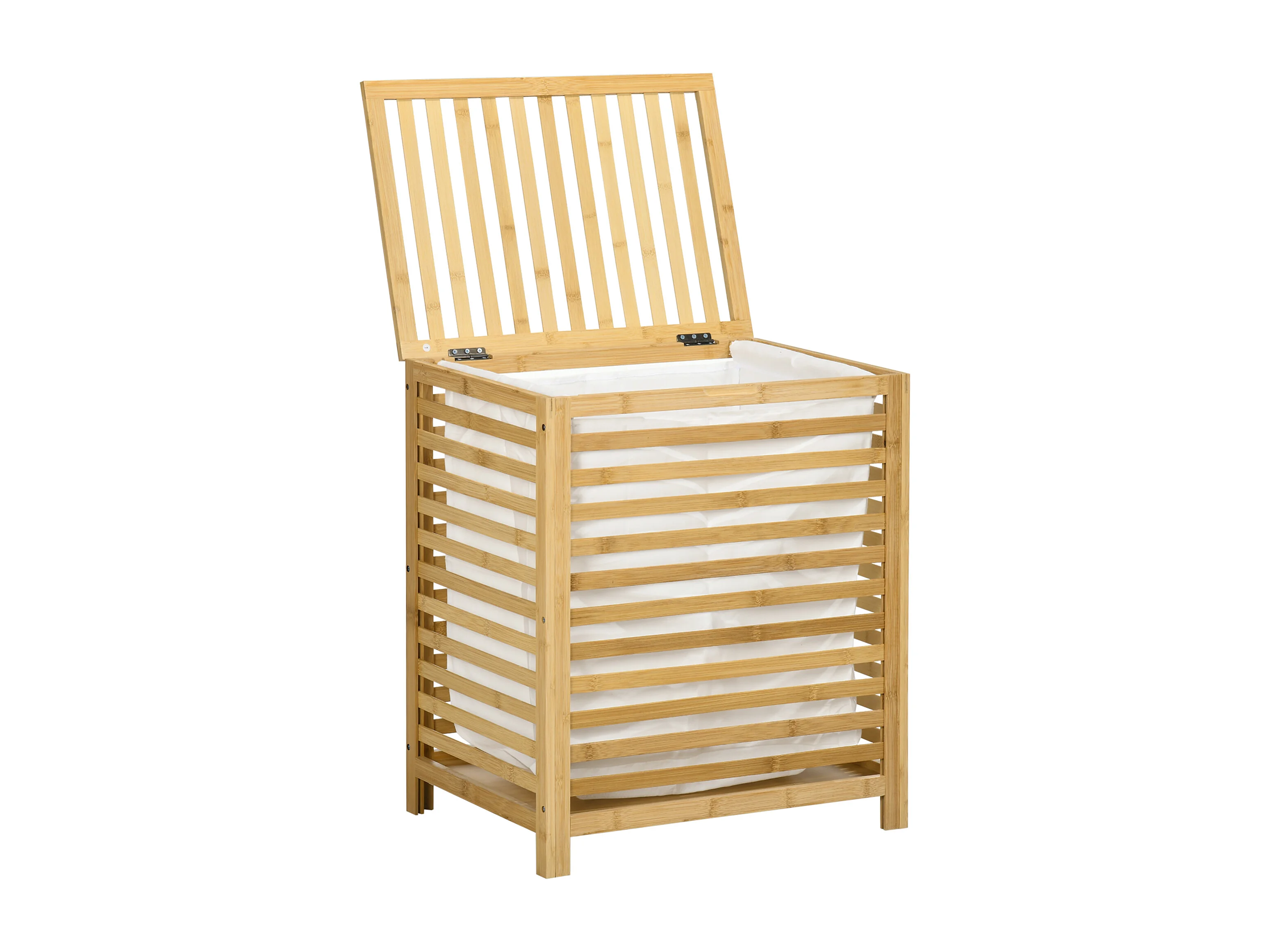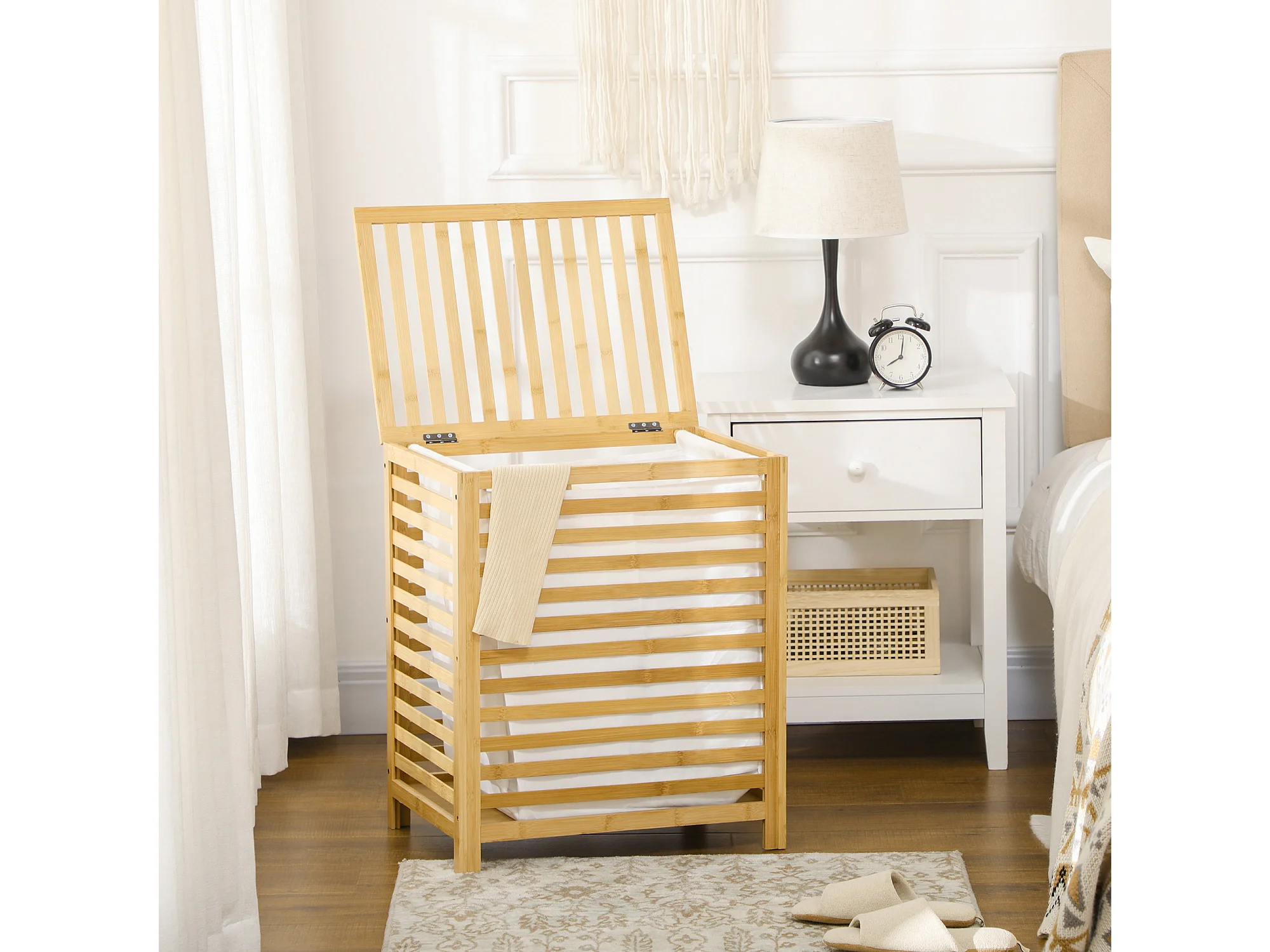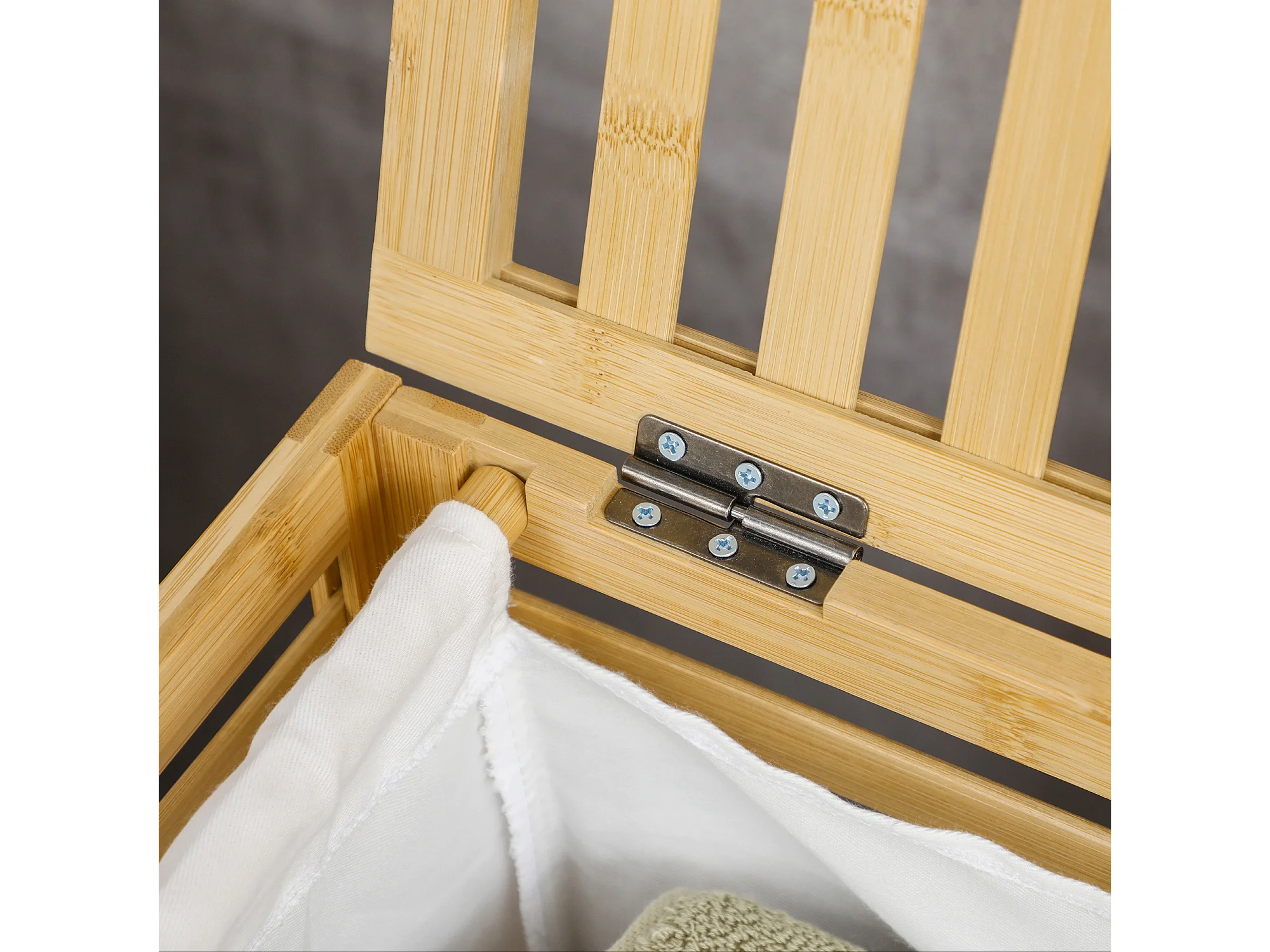 Cesto portabiancheria in bambù con coperchio e sacca rimovibile