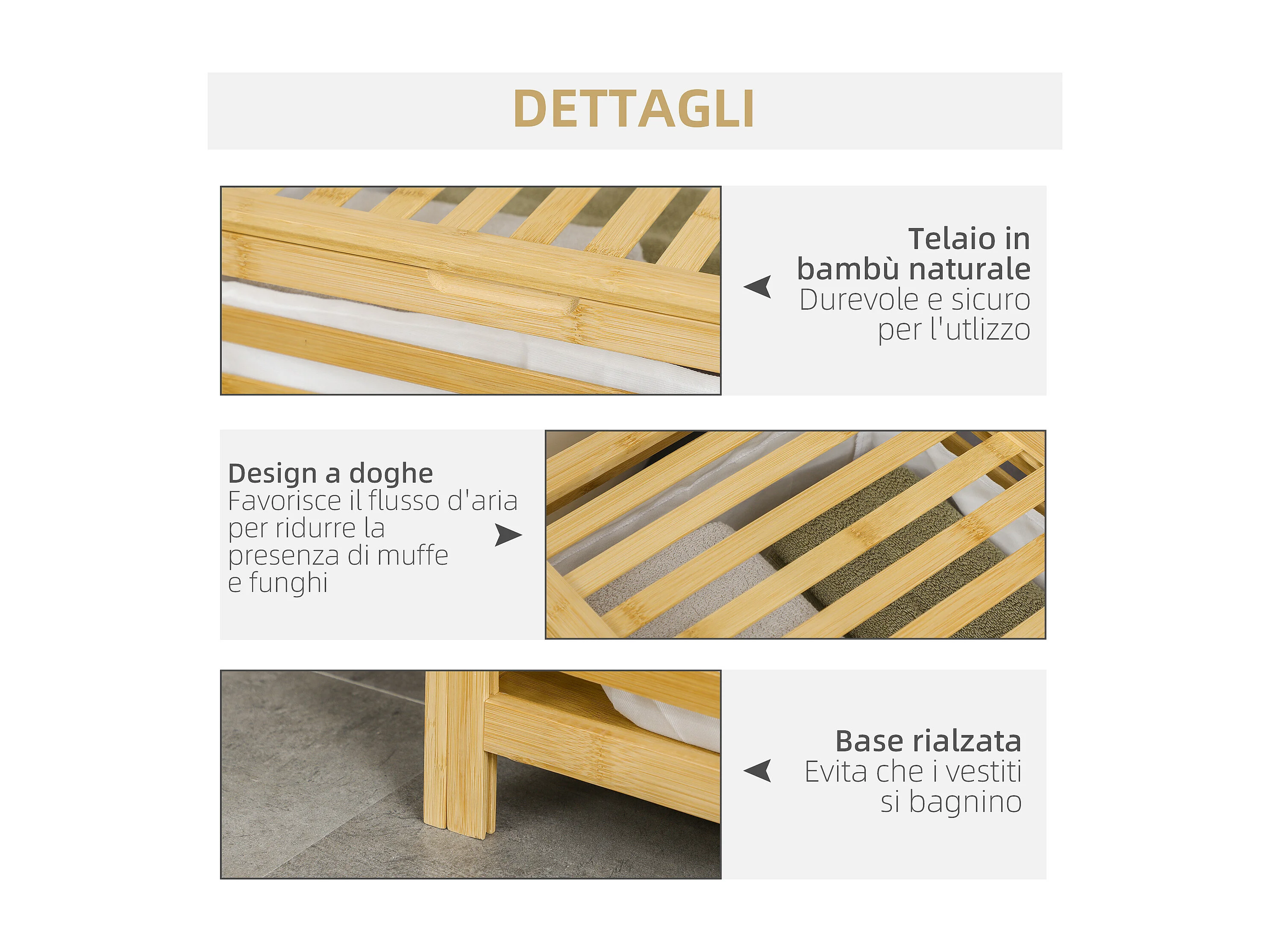 Cesto portabiancheria in bambù con sacca lavabile e coperchio