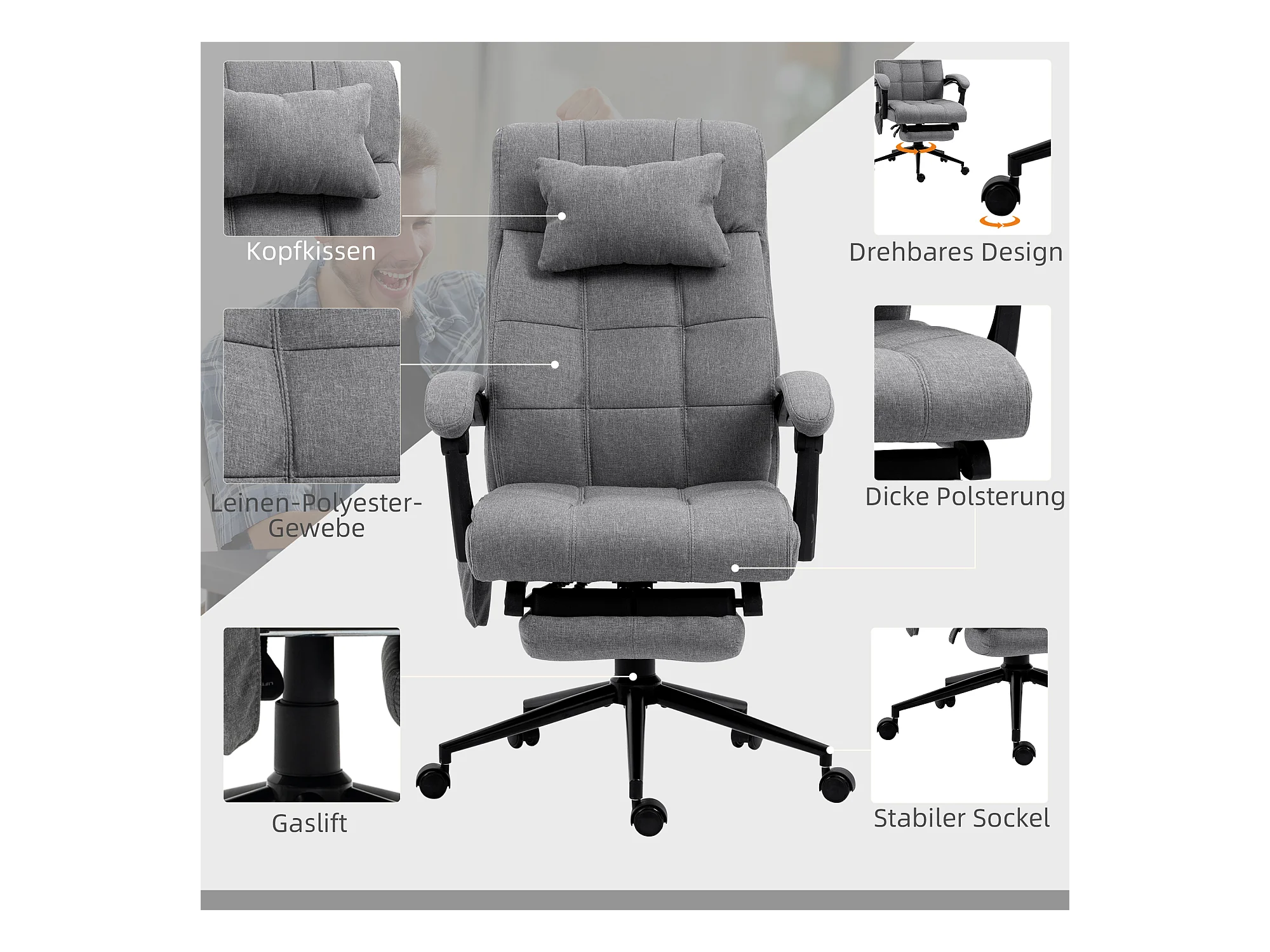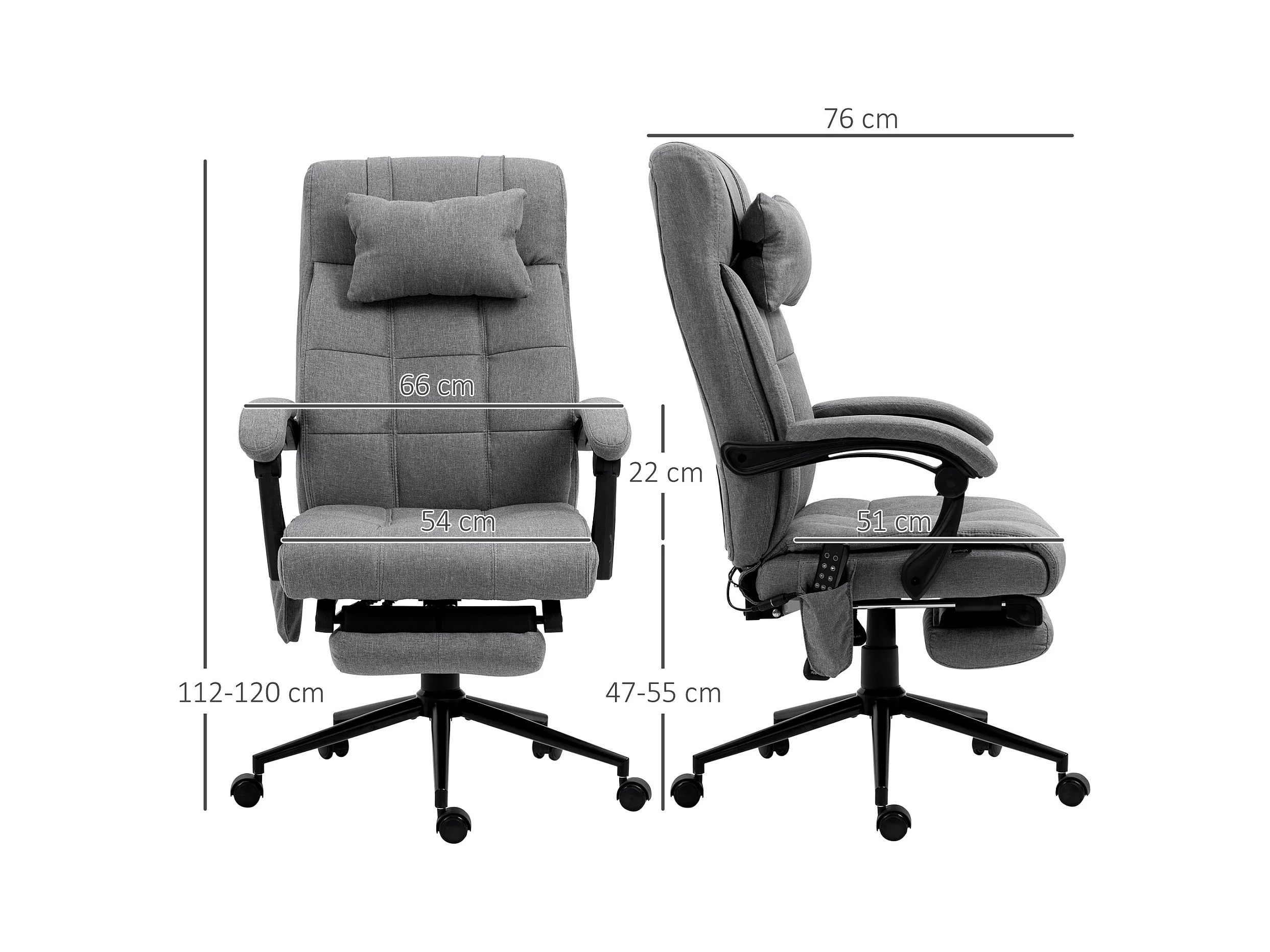 Chaise de Bureau ergonomica con massaggio e calore, dossier inclinabile e riposo-pieds grigio