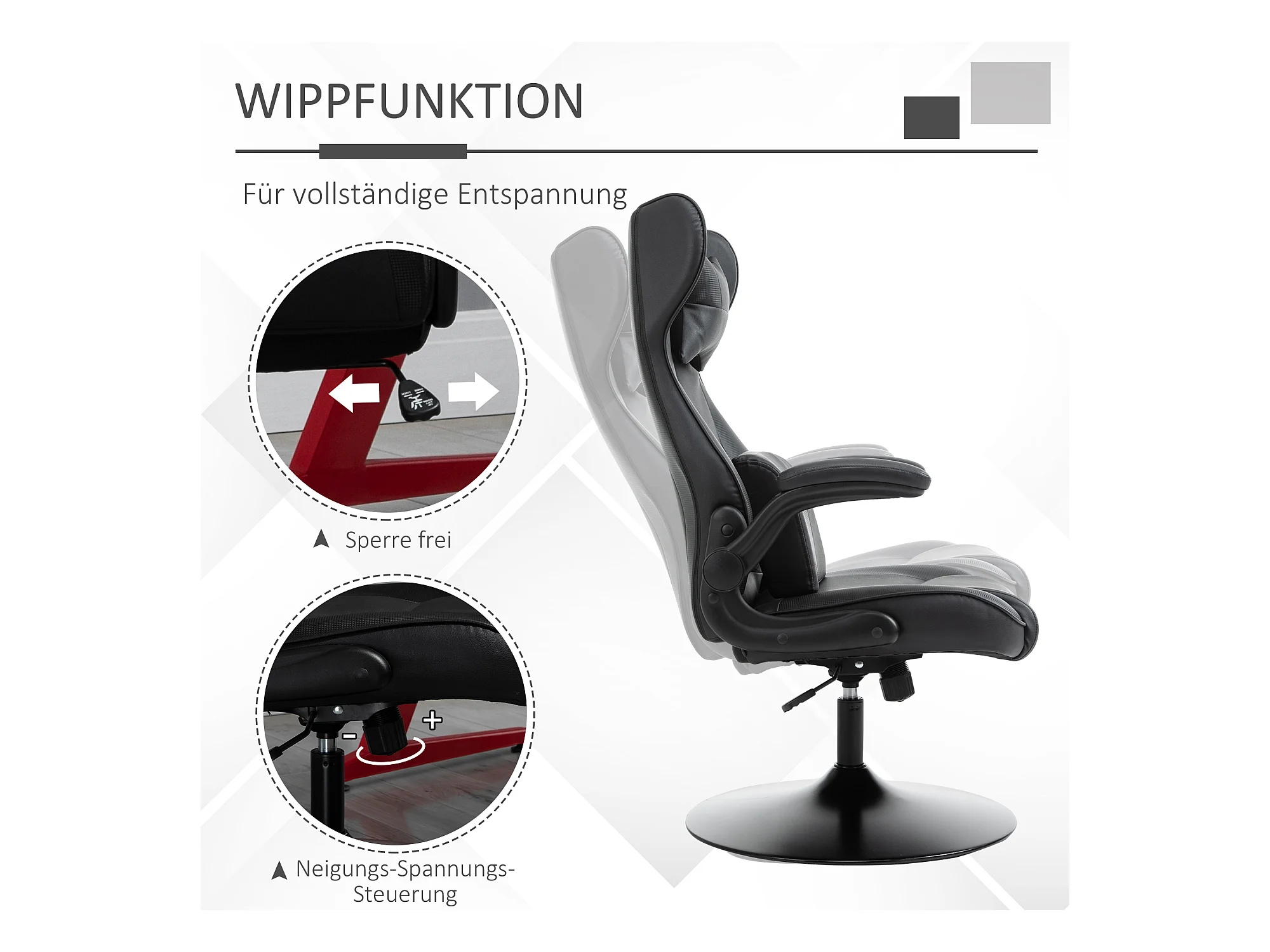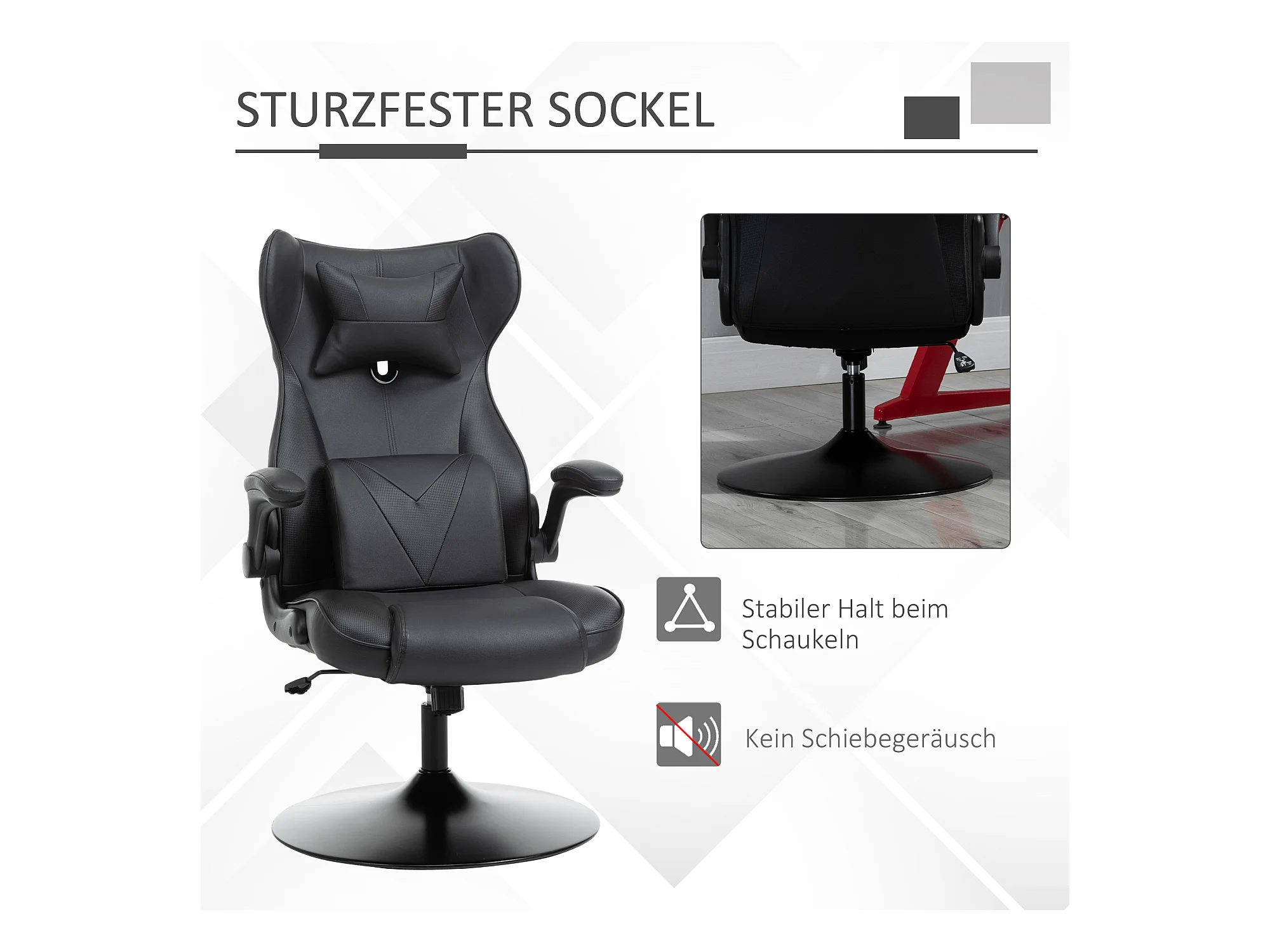 Chaise gaming ergonomica in simile cuoio nero con schienale inclinabile e rotazione di 360° per scrivania