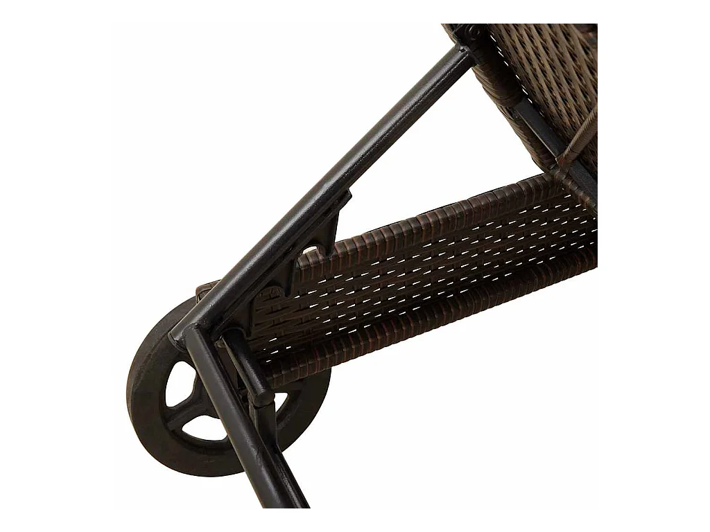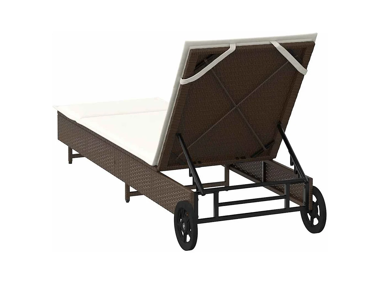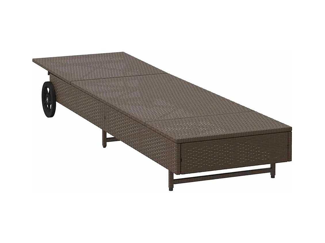 Chaise longue con ruote e cuscino in resina intrecciata marrone