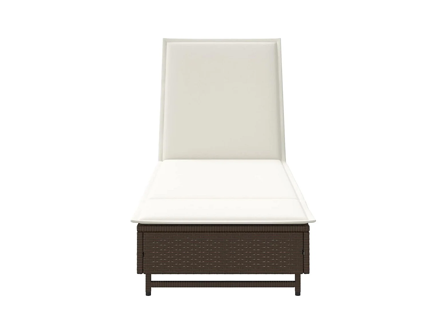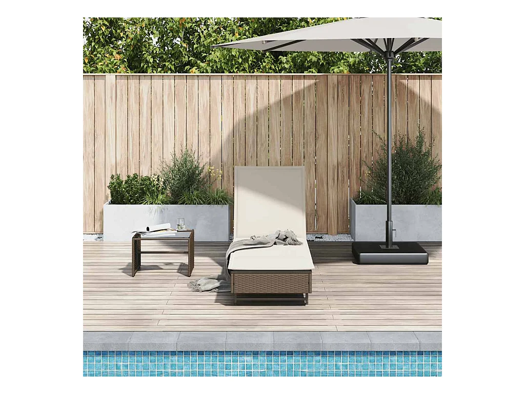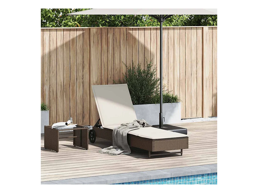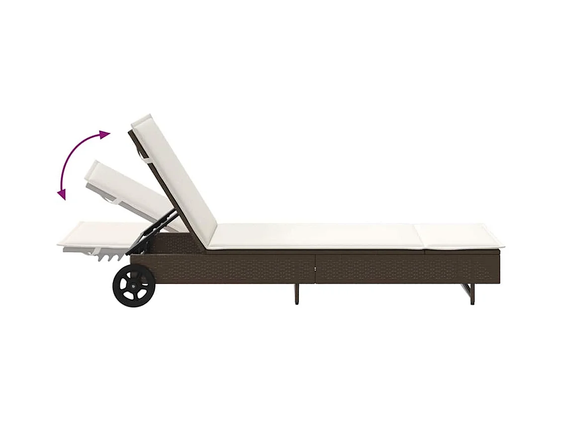 Chaise longue con ruote e cuscino in resina intrecciata marrone