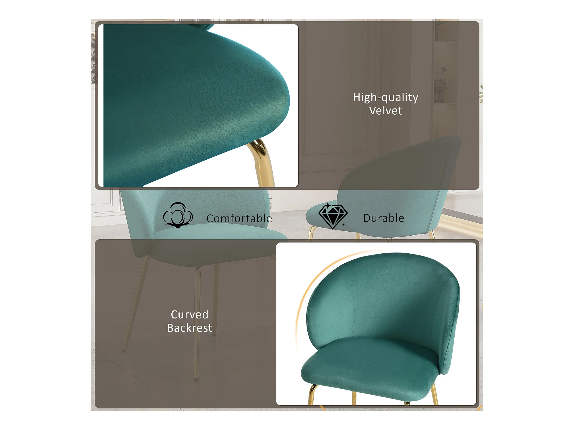 Set di 4 sedie, sedie sala da pranzo, sedie soggiorno, sedia imbottita, sedia cucina, velluto
