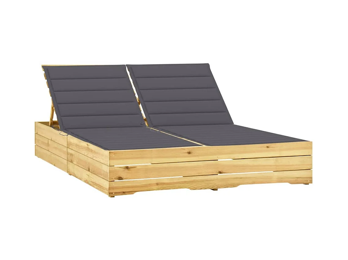Chaise longue doppia con cuscini antracite Pino impregnato