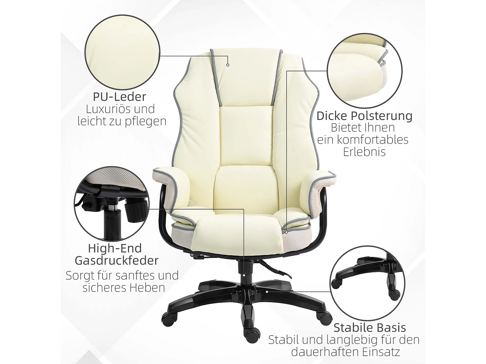 Sedia da ufficio massaggiante e riscaldante con poggiapiedi crema