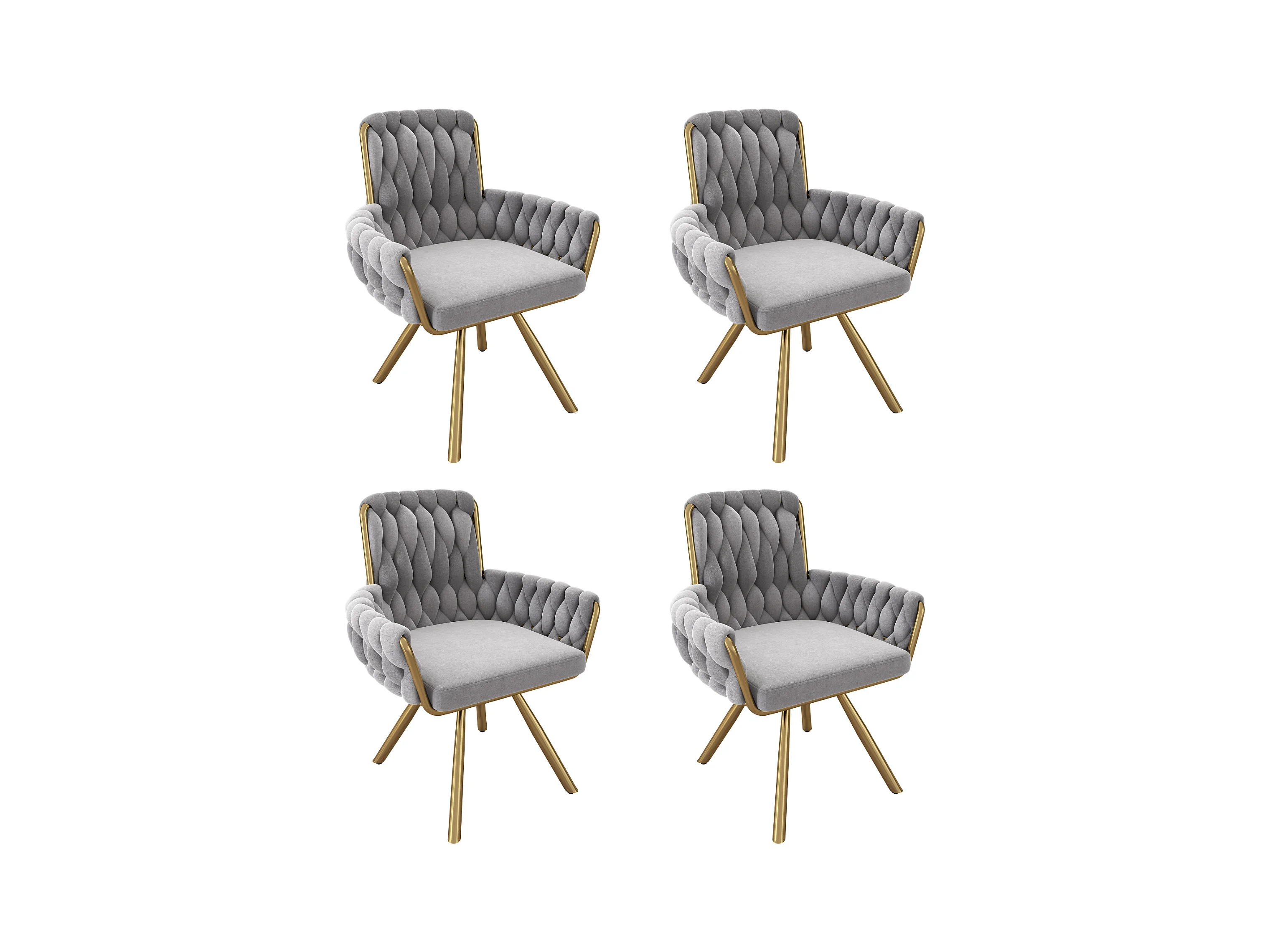 Chaise longue girevole in velluto grigio con piedi in metallo per salone, camera da letto, ufficio, design moderno, lotto di 4