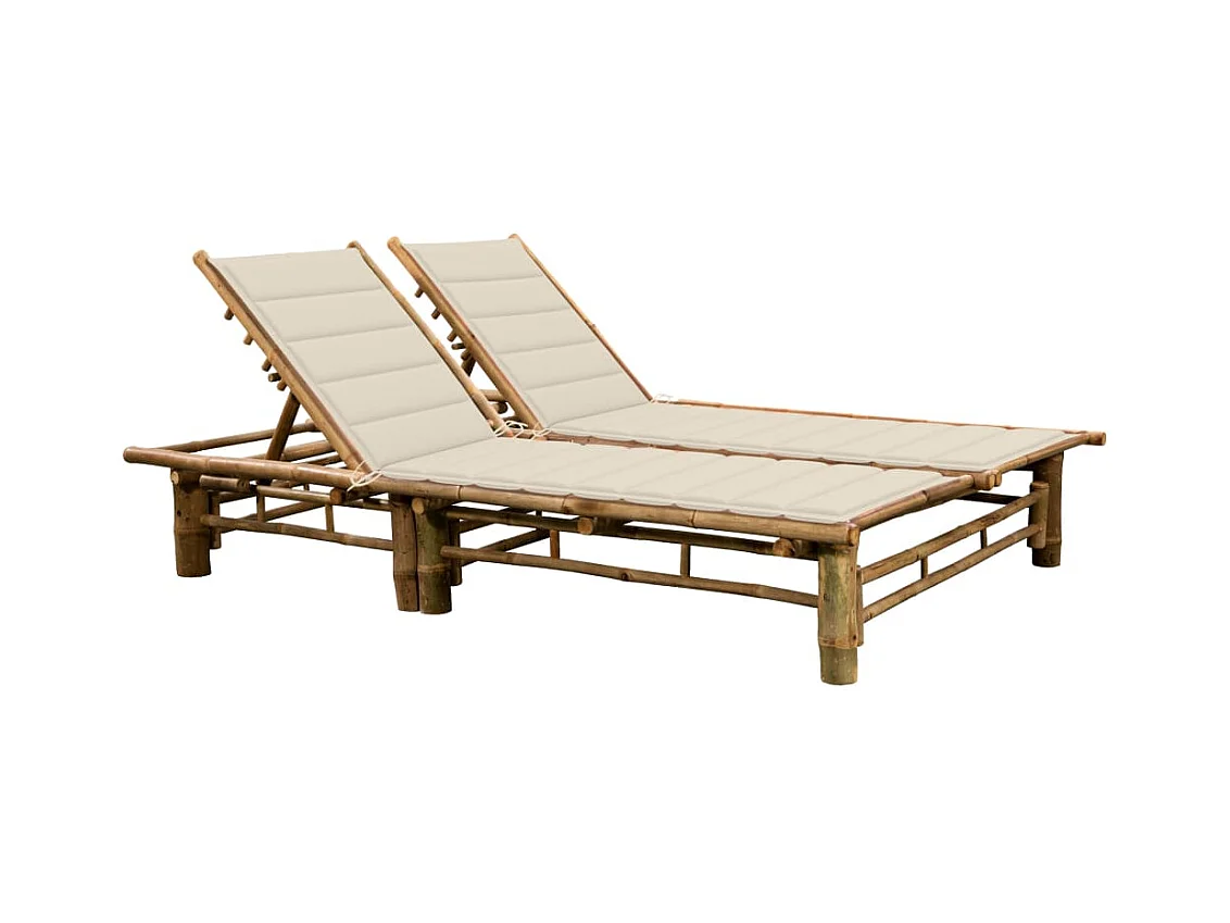 Chaise longue doppia con tetto e tende in resina intrecciata beige
