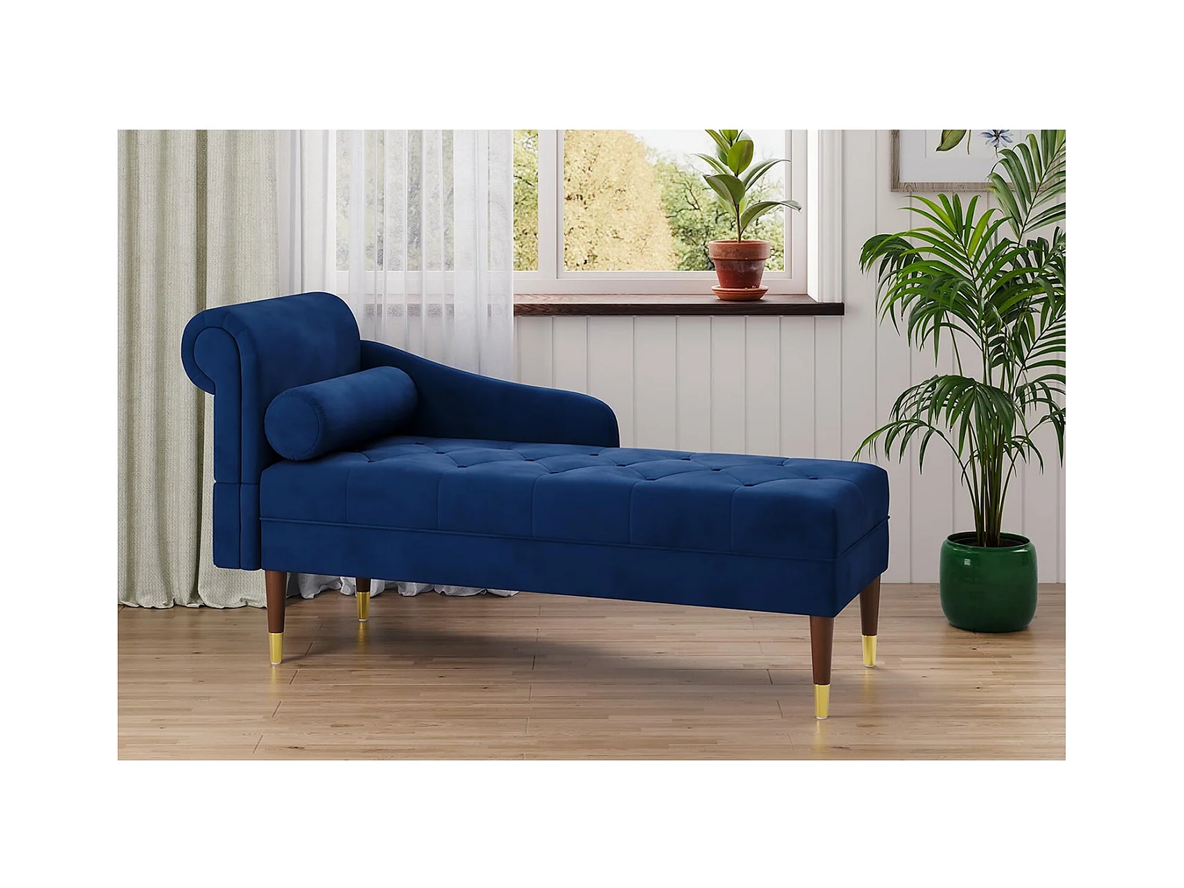 Chaise Longue in tessuto di velluto, poltrona relax con braccioli e cuscino lombare cilindrico per soggiorno, appartamento, piccolo spazio - Blu