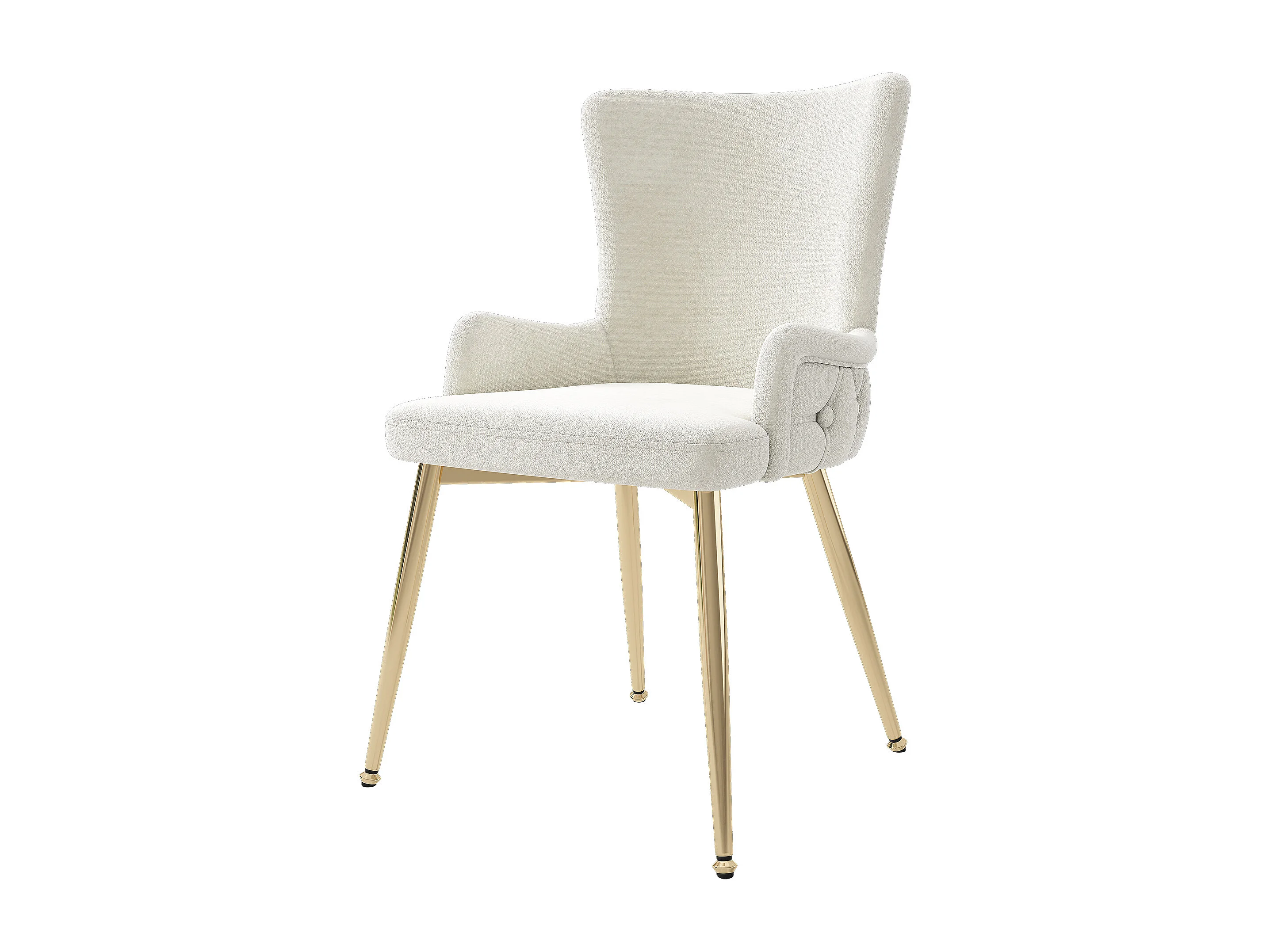 Chaise velours beige luxe con accoudoirs pieds métal doré réglables salon salle à manger lot de 2
