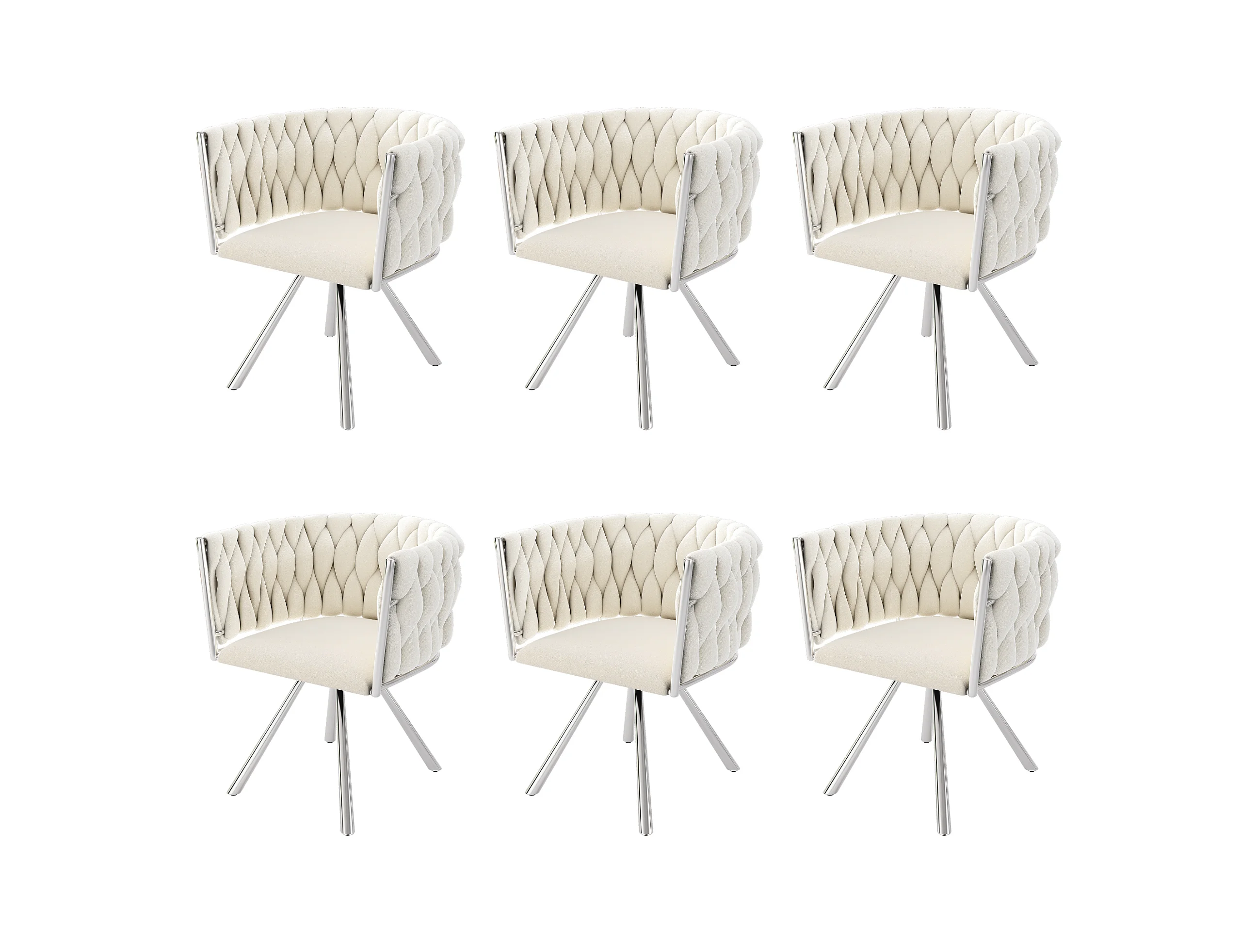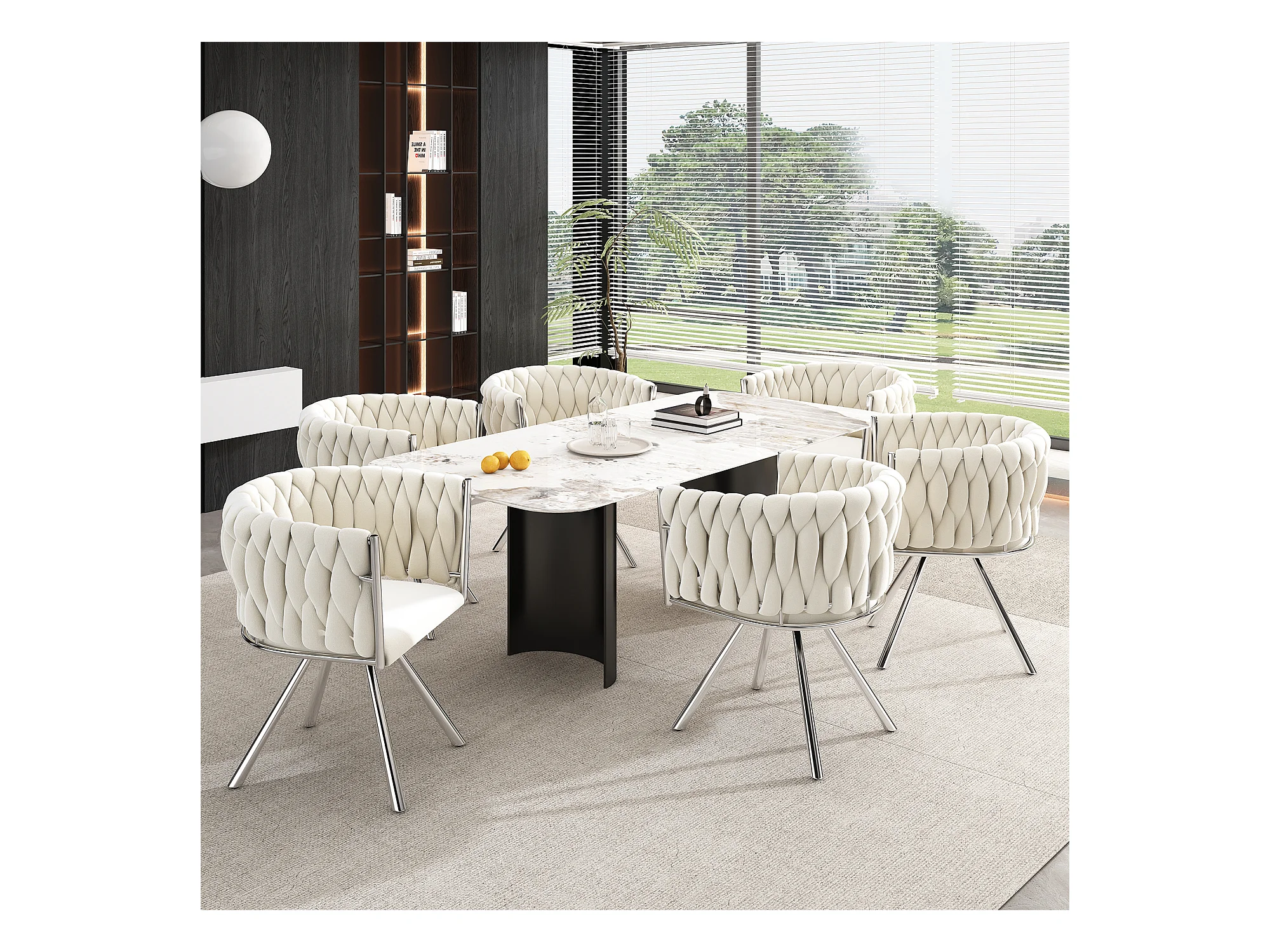 Chaise en velours beige pieds métal argenté poltrona lounge confortevole salone camera moderna lotto de 6