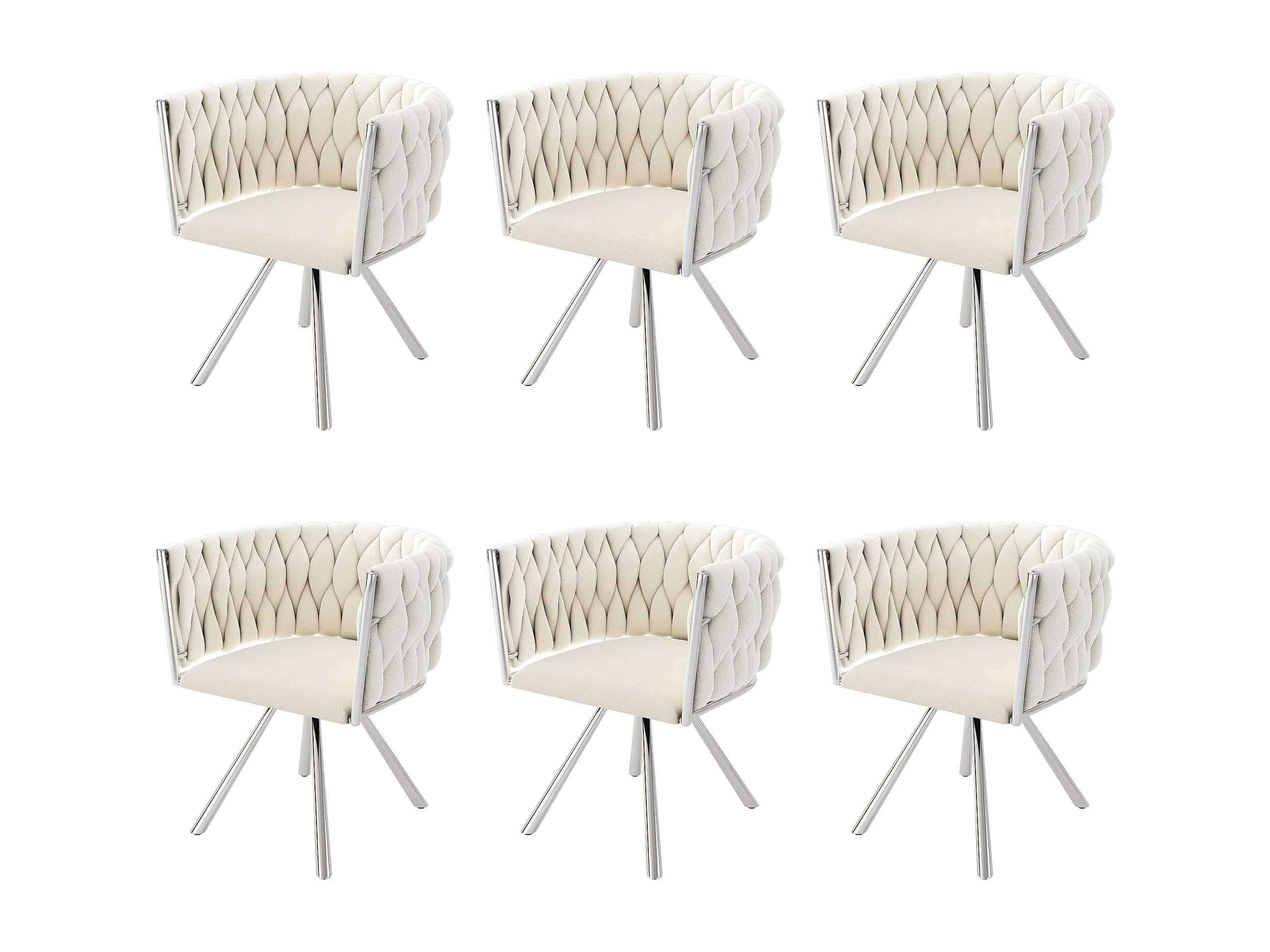 Chaise longue in velluto beige con piedini in metallo argentato per design da salone o da camera lotto di 6