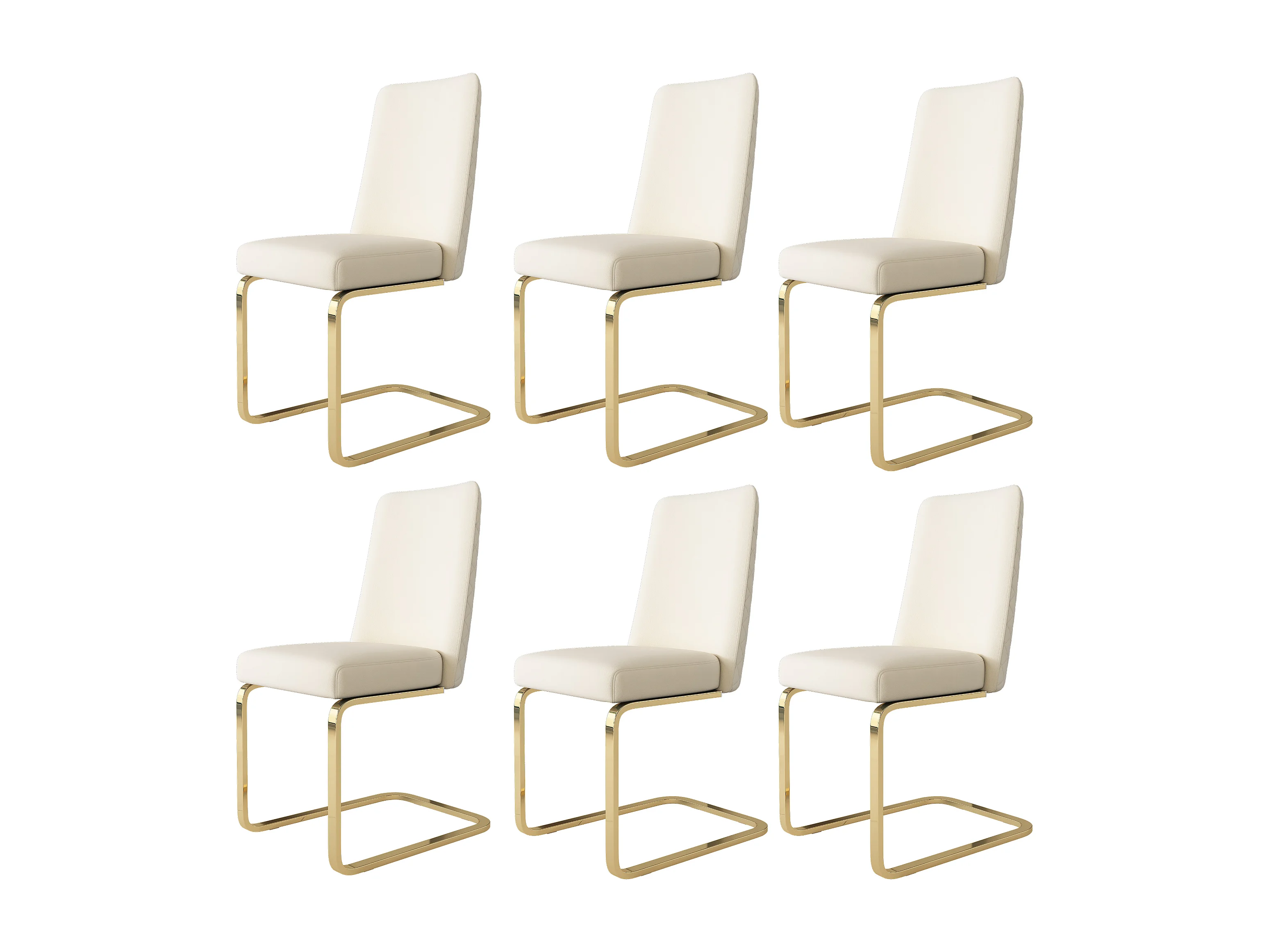 Chaise longue in velluto beige con pieds dorés, dossier capitonnè diamantato, per salone o sala da pranzo lotto di 6