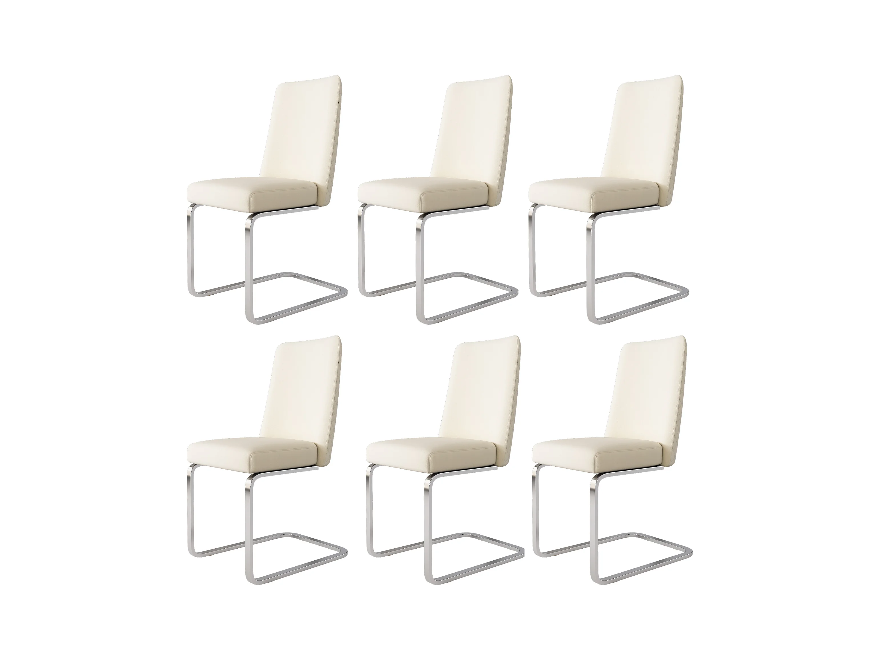 Chaise longue in velluto beige con schienale capitonnè e piedini in metallo argentato per salone o sala da pranzo, lotto da 6