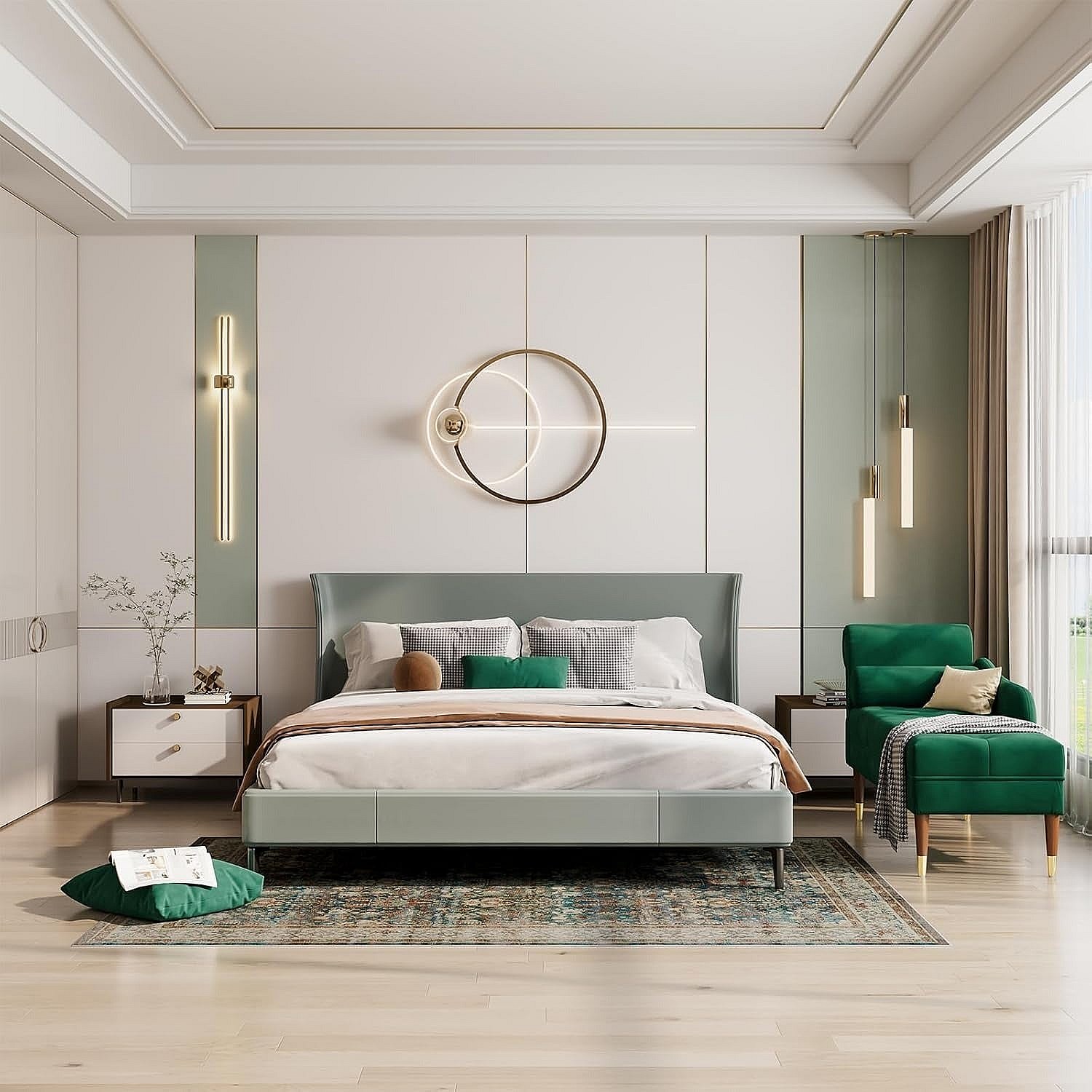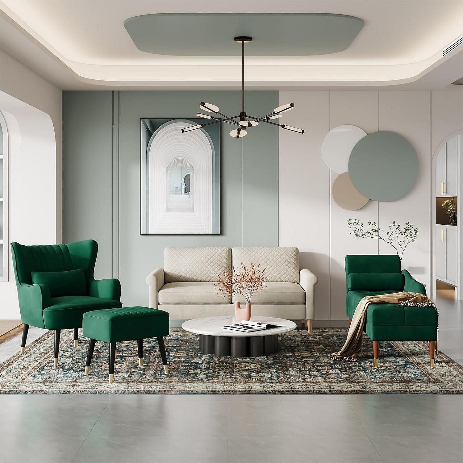 Chaise longue in velluto, poltrona relax con braccioli e cuscino lombare cilindrico per soggiorno, appartamento, piccolo spazio - Verde