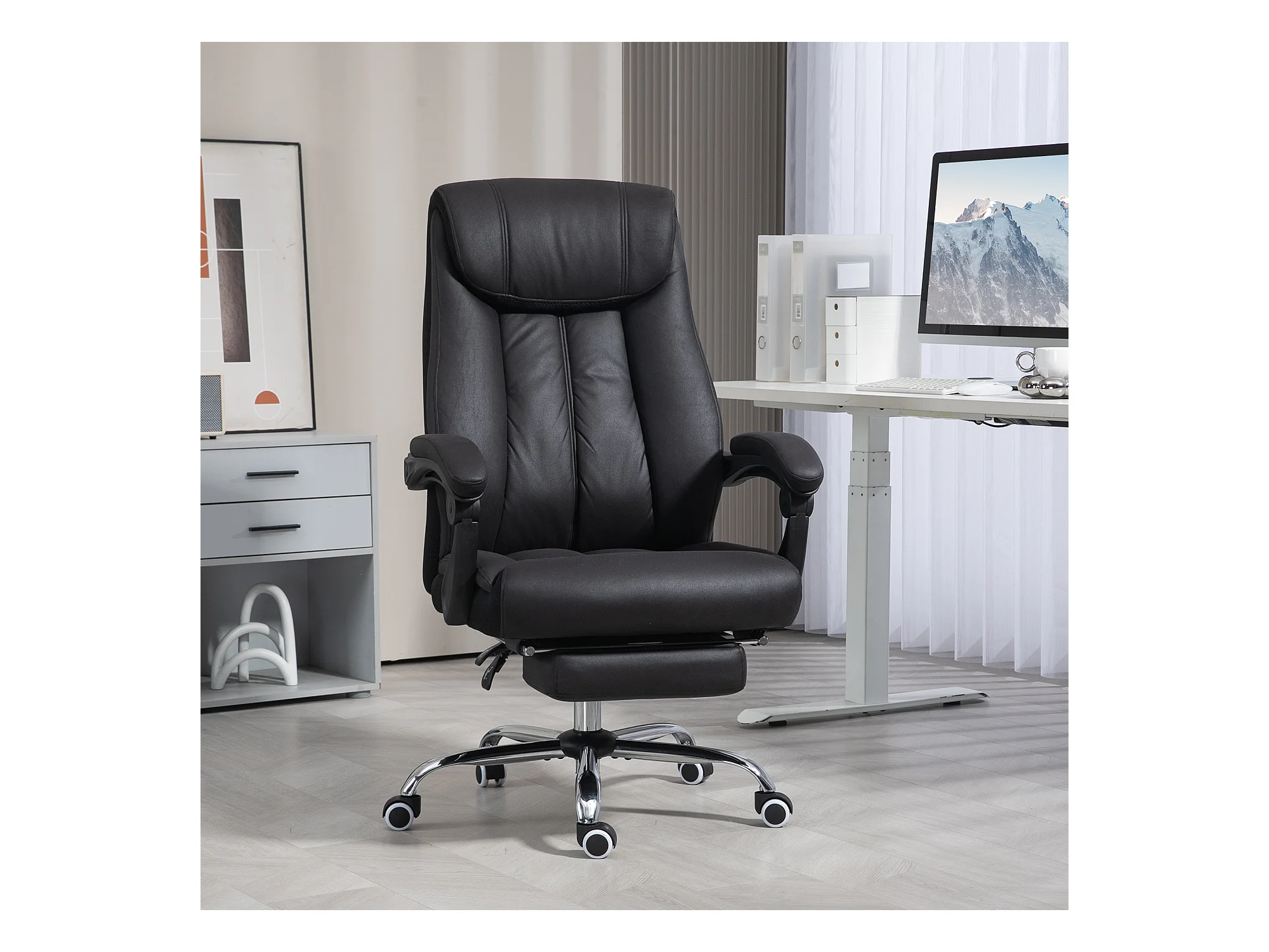 Chaise-office in microfibra nera con dossier inclinabile 145° girevole e poggiapiedi 120 kg