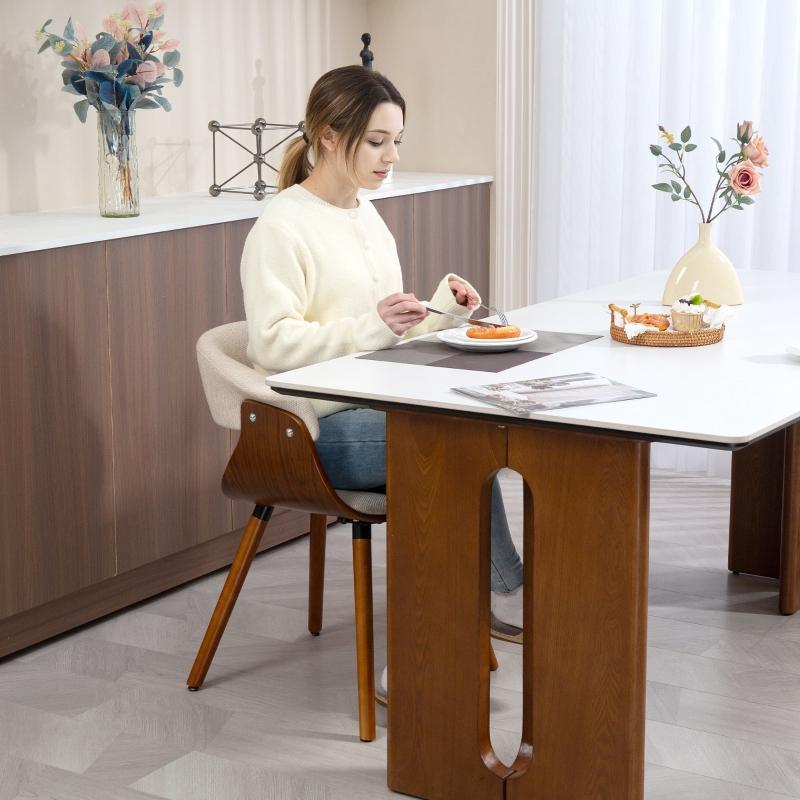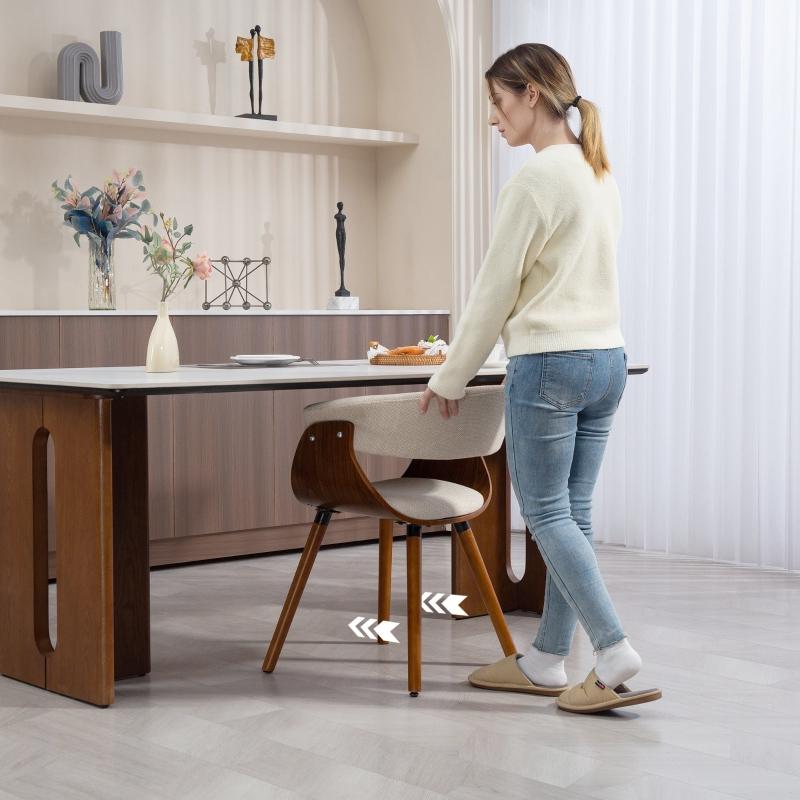 Chaise salle à manger lino poliestere pieds bois design confortevole beige 62x55x75 cm