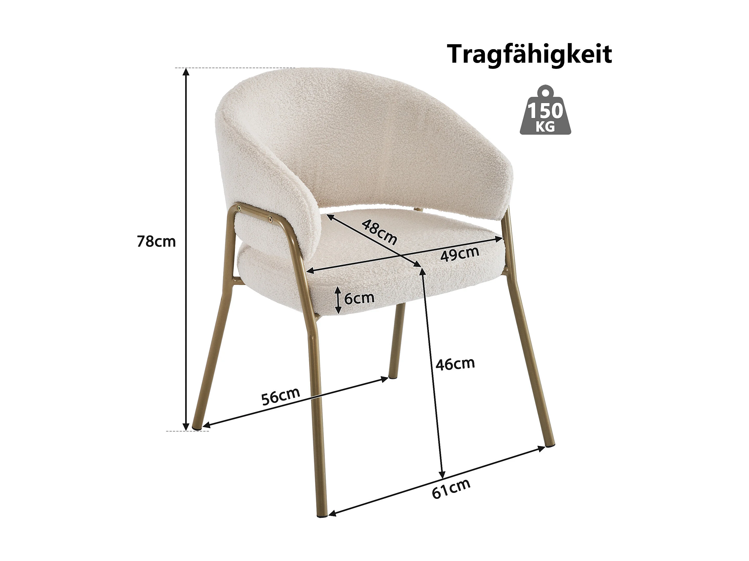 Chaise salle à manger velluto bianco pieds dorés design moderno confortevole 49x48x78 cm lotto di 1