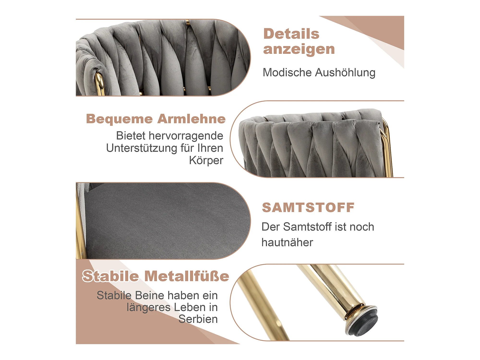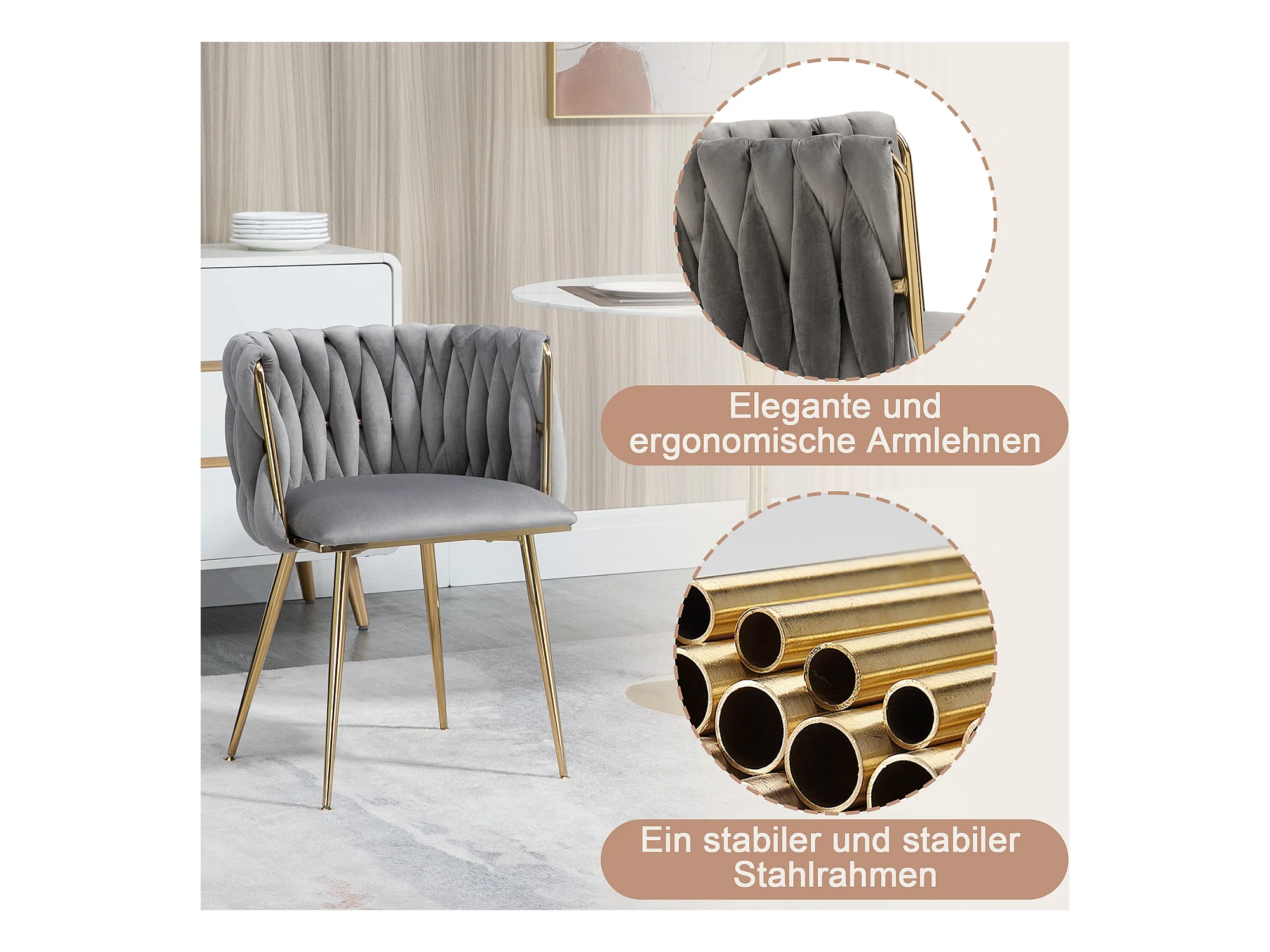 Chaise salle à manger velluto design dossier tressé assise confortevole pieds métal doré 2 pz