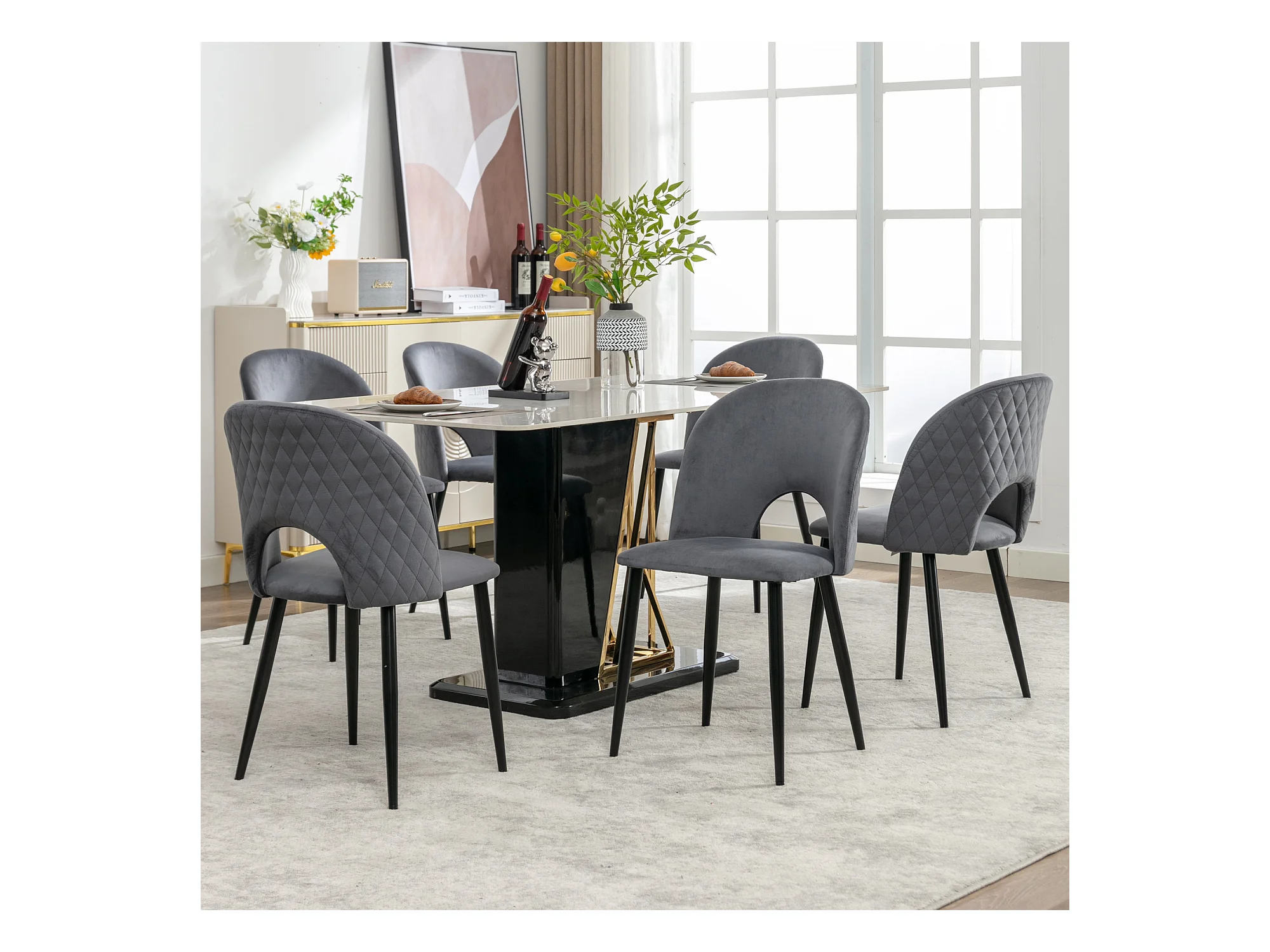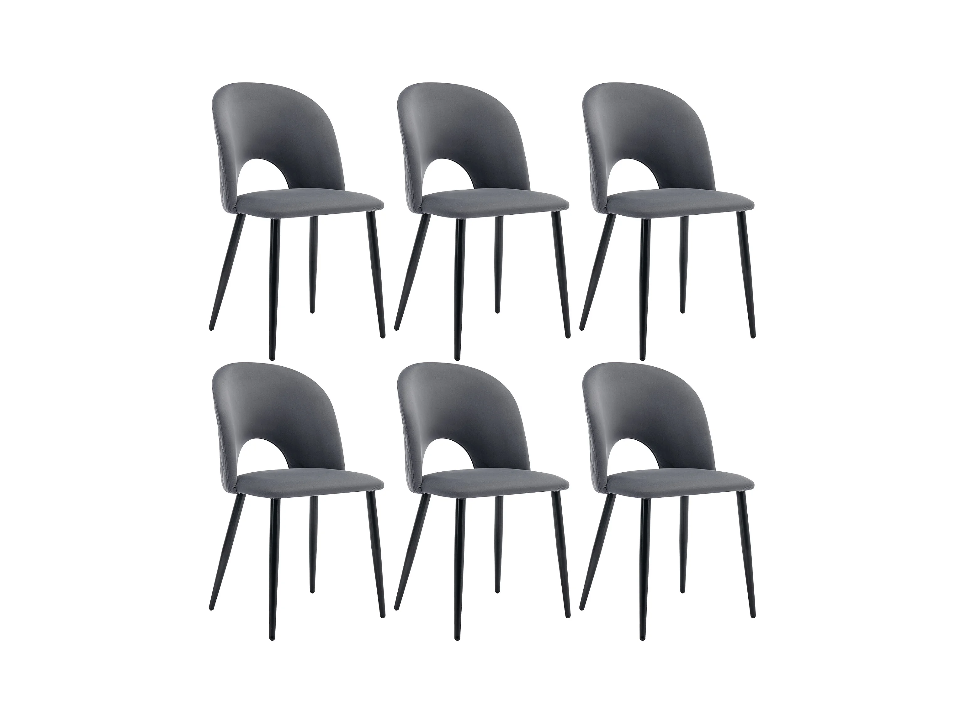 Chaise salle à manger velluto grigio dossier con motivo diamante pieds réglables metallo design moderno 47x44x84 cm lotto di 6