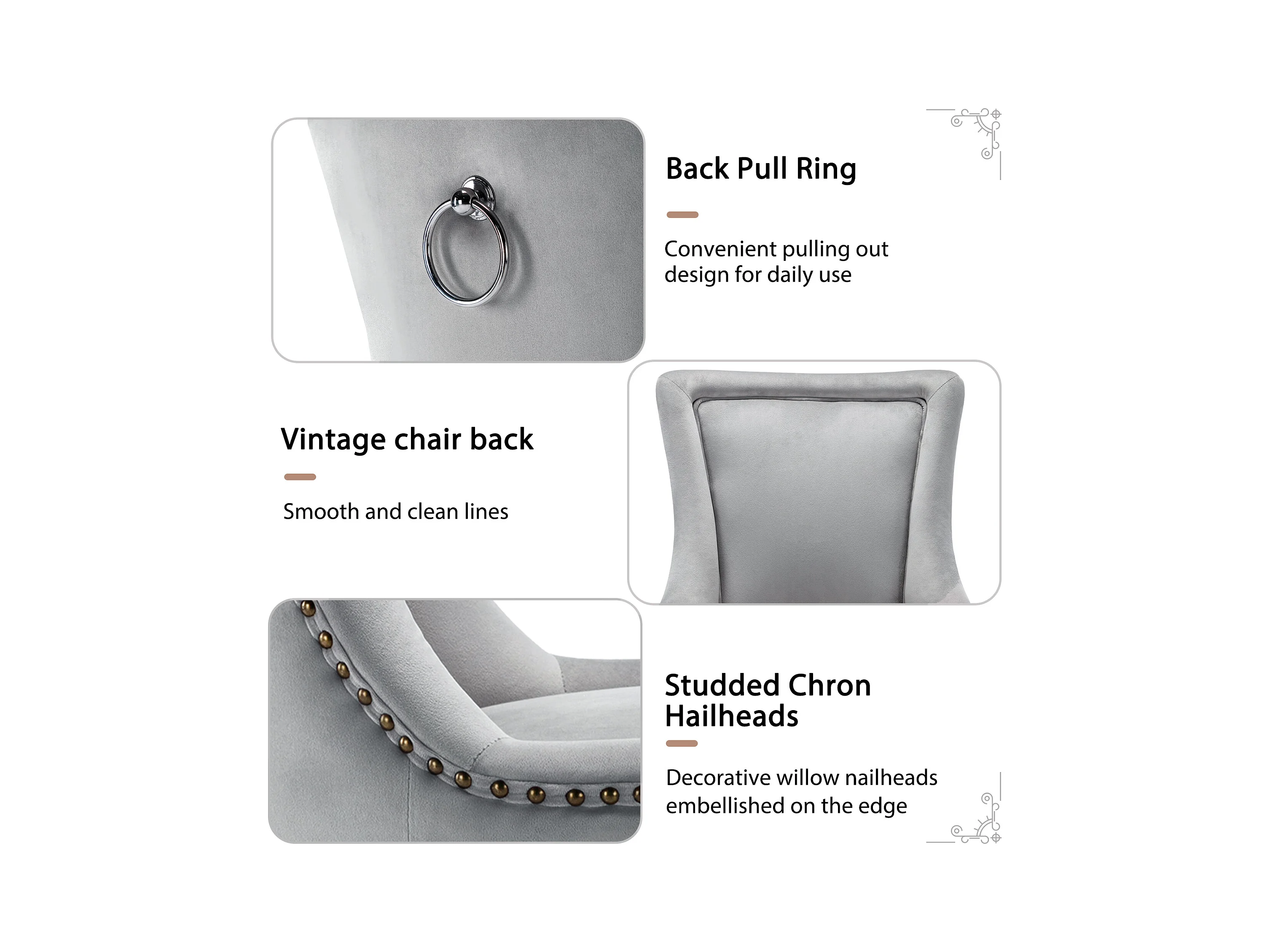 Chaise salle à manger velours pieds bois massif réglables design rétro gris pour kitchen salon lot de 2