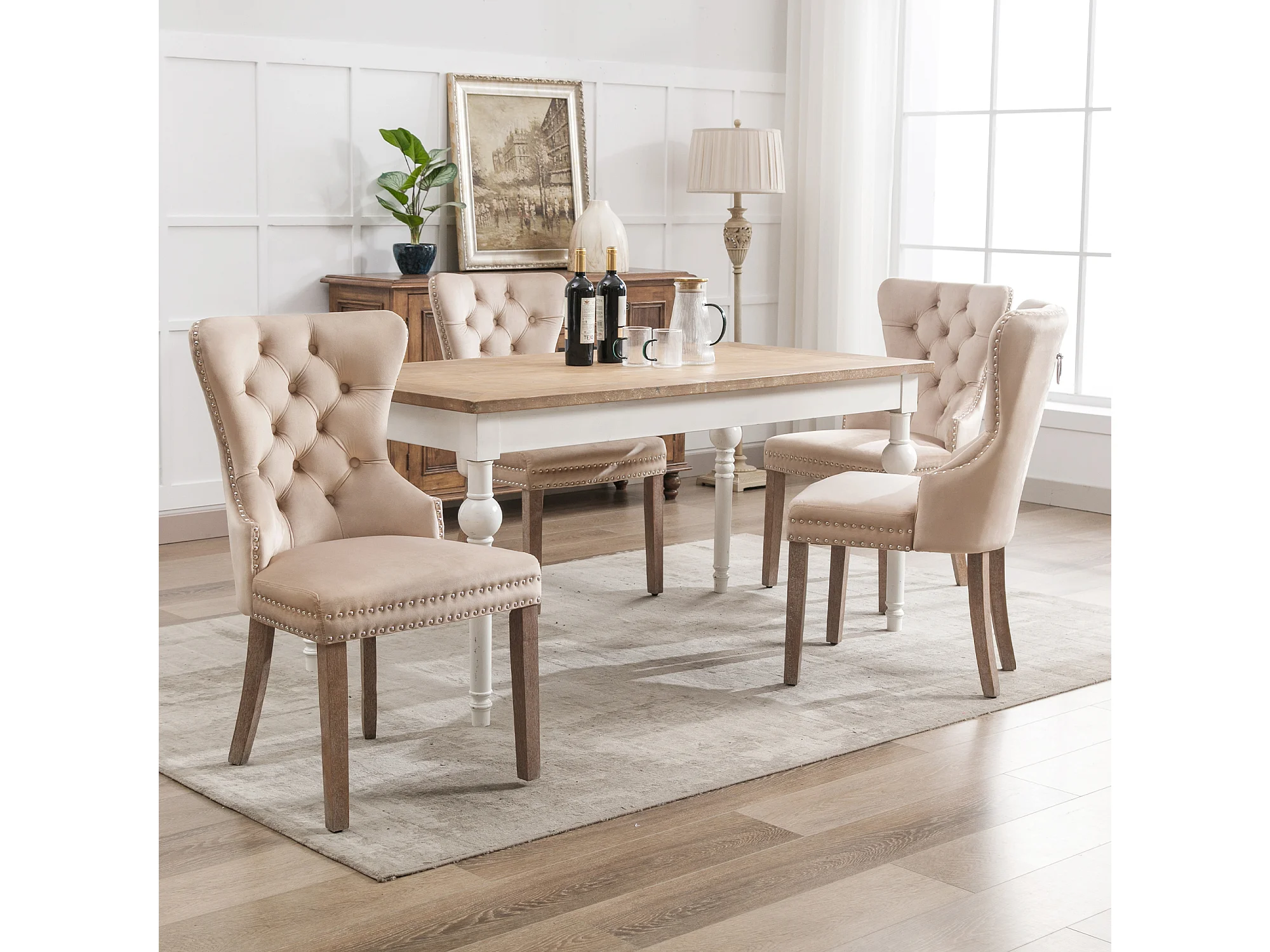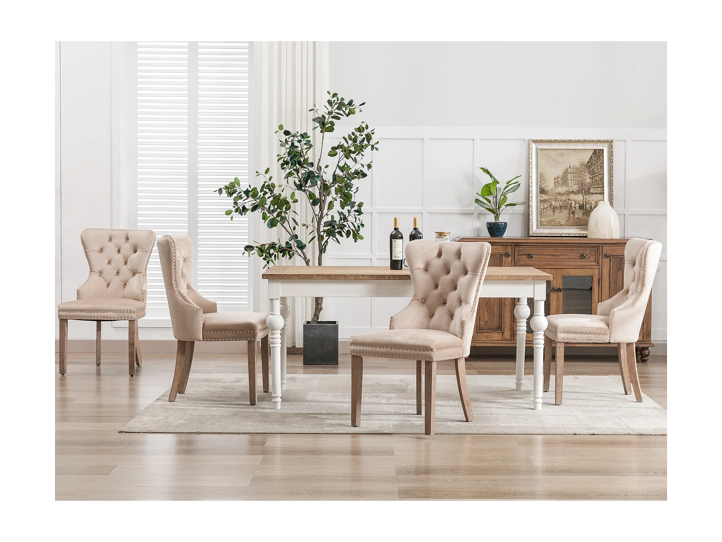 Chaise salle à manger velluto pieds bois massif réglables design rétro beige pour kitchen salon lotto di 4