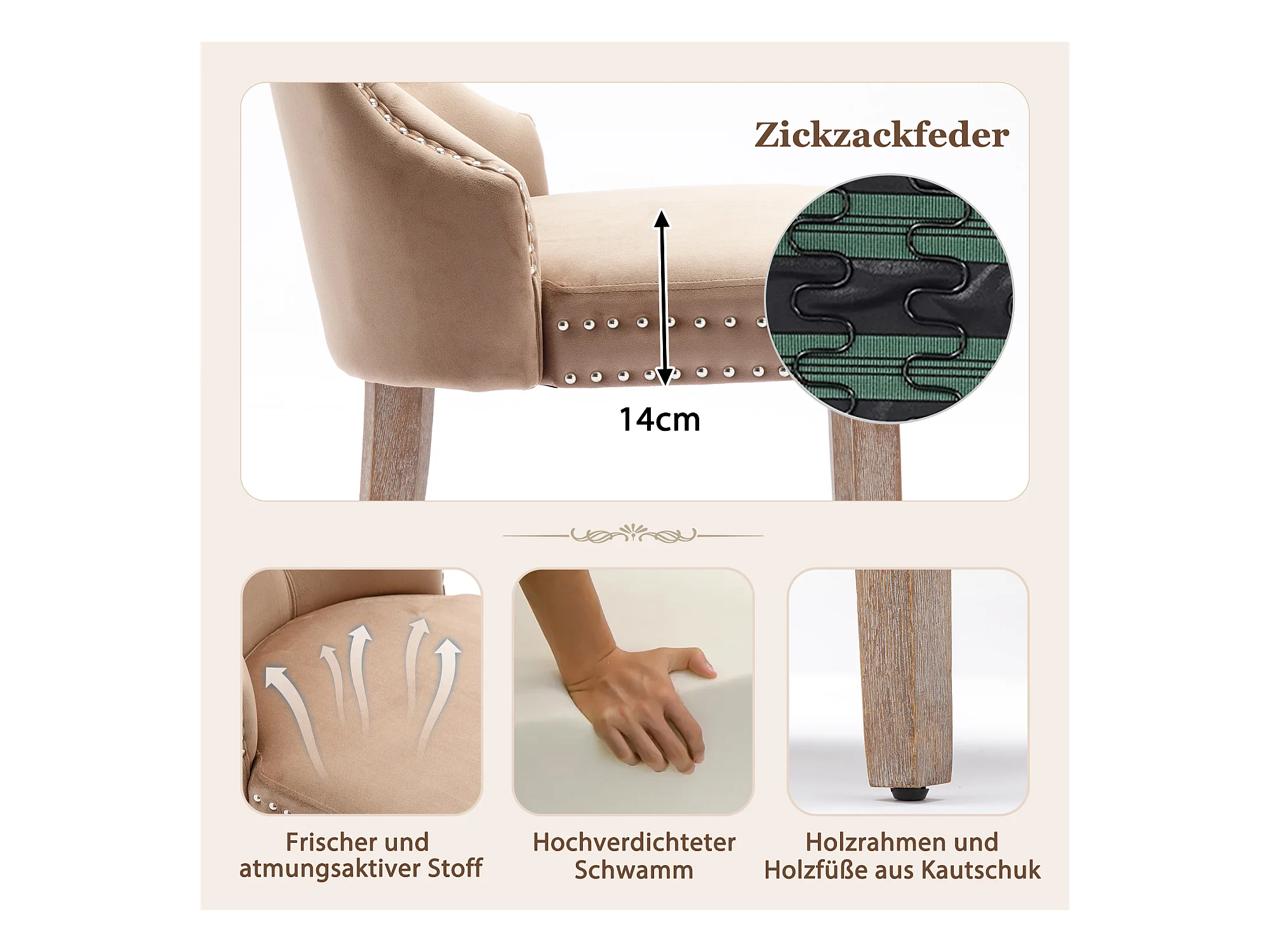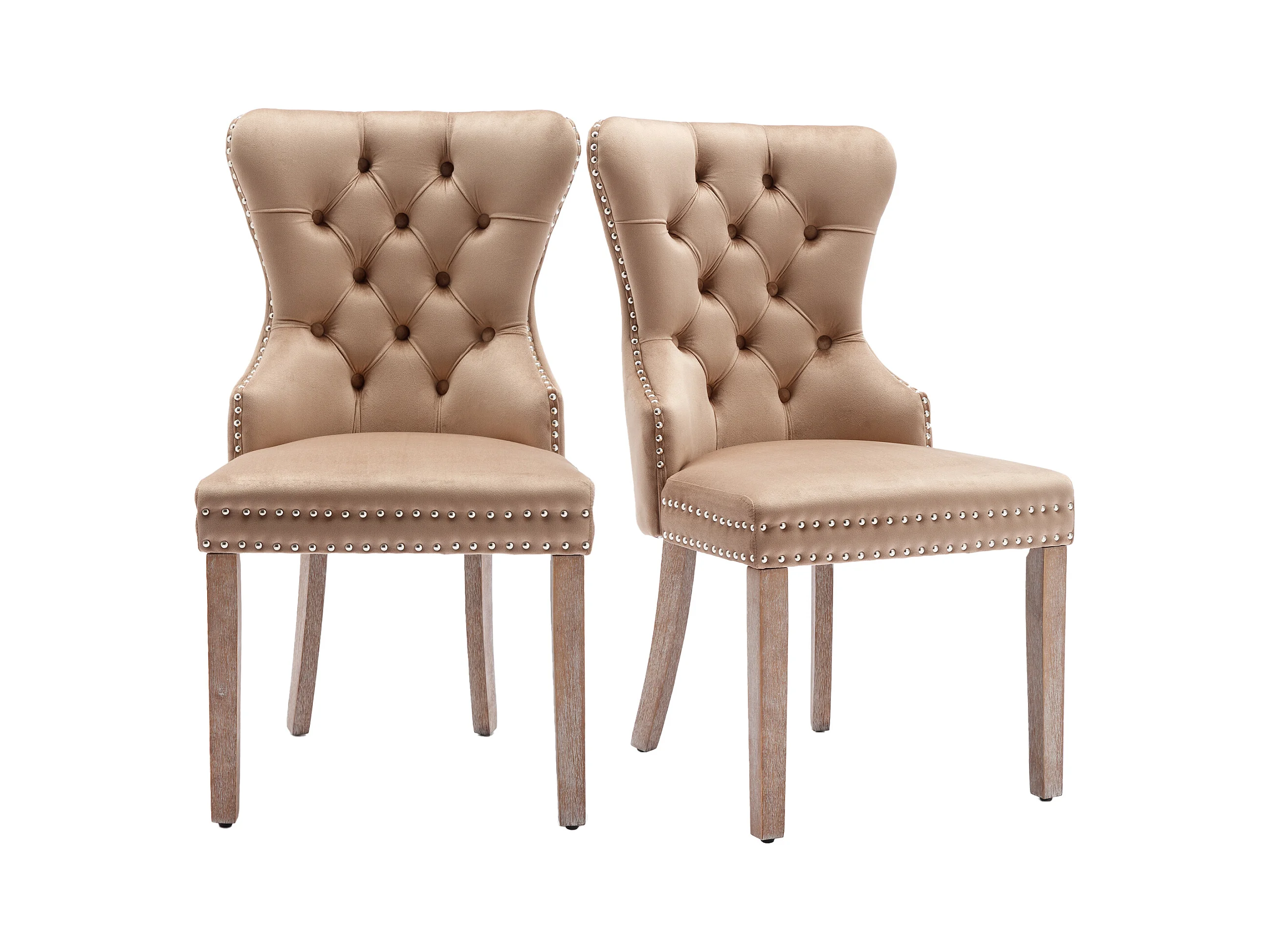 Chaise salle à manger velours avec pieds bois massif repose-pieds arredamento regolabile clous brun café lot de 2
