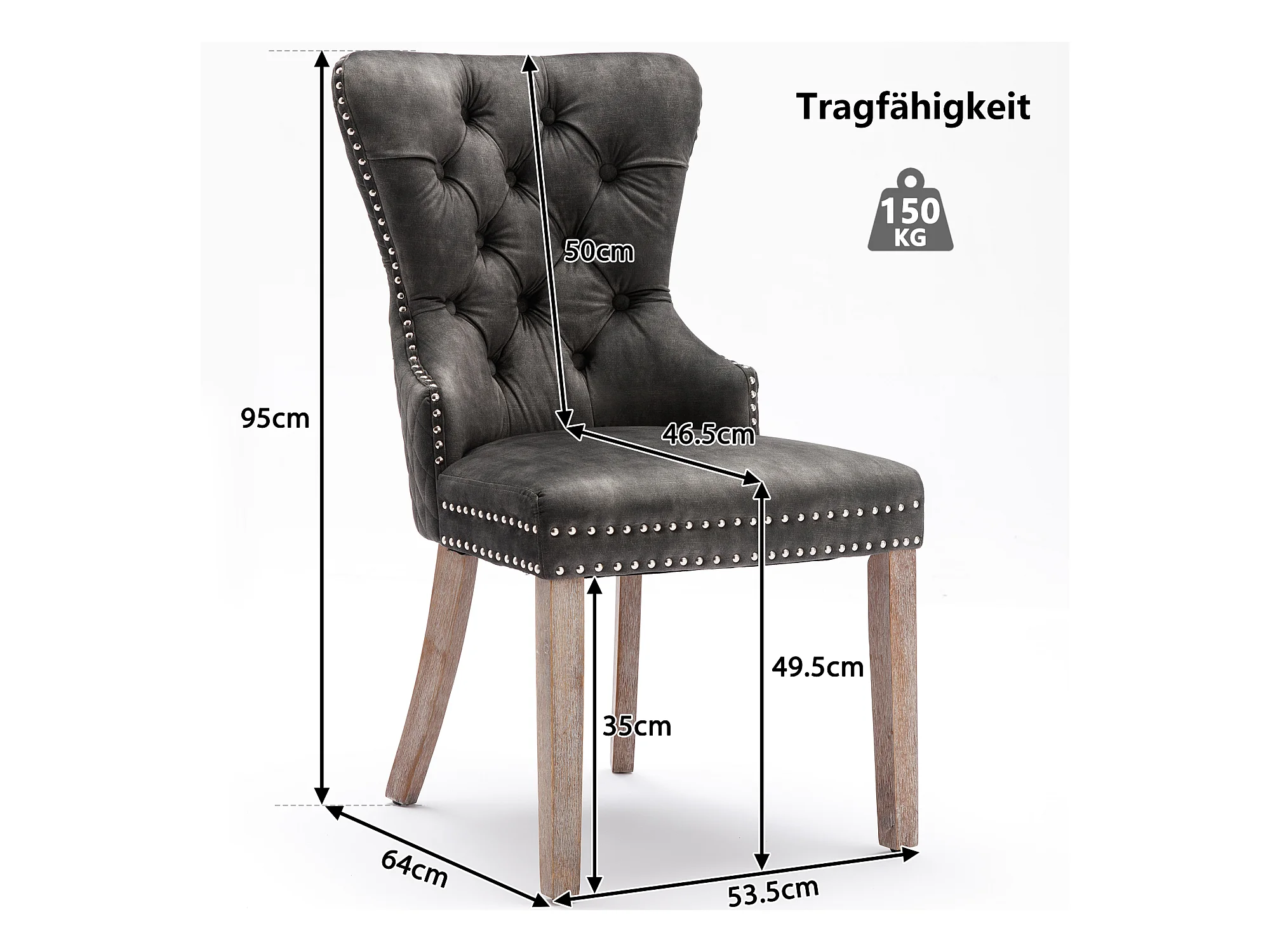 Chaise salle à manger velluto grigio pieds bois massiccio design confortevole capitonnè lotto di 6