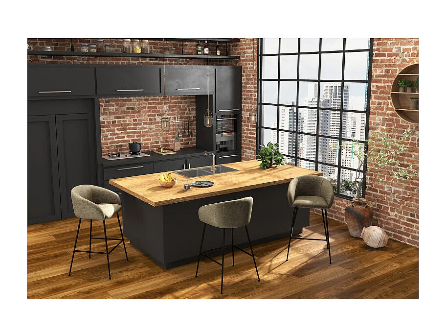 CHLOE-Sedia da bar in tessuto marrone (x2)