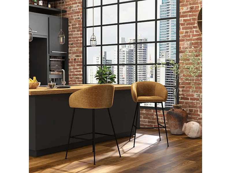 CHLOE-Sedia da bar in tessuto senape (x2)